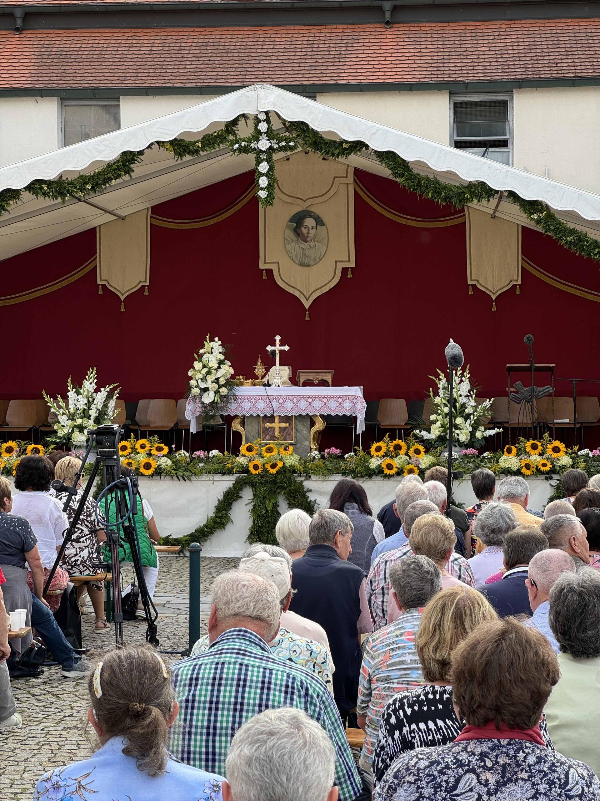 Er schloss seine Predigt mit dem Aufruf: „Erheben wir als Kirche und Gesellschaft unsere Stimme, wo die Würde des Menschen gefährdet ist, und seien wir Anwältinnen und Anwälte für das Leben. Schließlich: Rechnen wir damit, dass uns in diesem Leben Dinge passieren, die wir nicht verstehen und unter denen wir leiden. Christsein, das lehrt uns die hl. Anna Schäffer, heißt, auch diese Dinge anzunehmen und Mut zu fassen im Glauben an die Zusage, die Paulus uns in der heutigen Lesung freudig zuruft: ‚Christus ist unter euch, die Hoffnung auf Herrlichkeit.‘ (Kol 1,27)