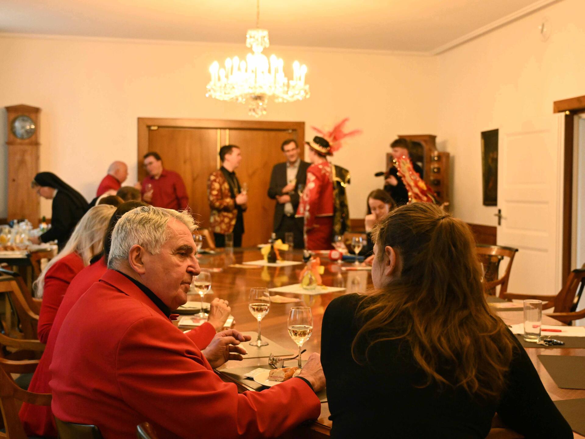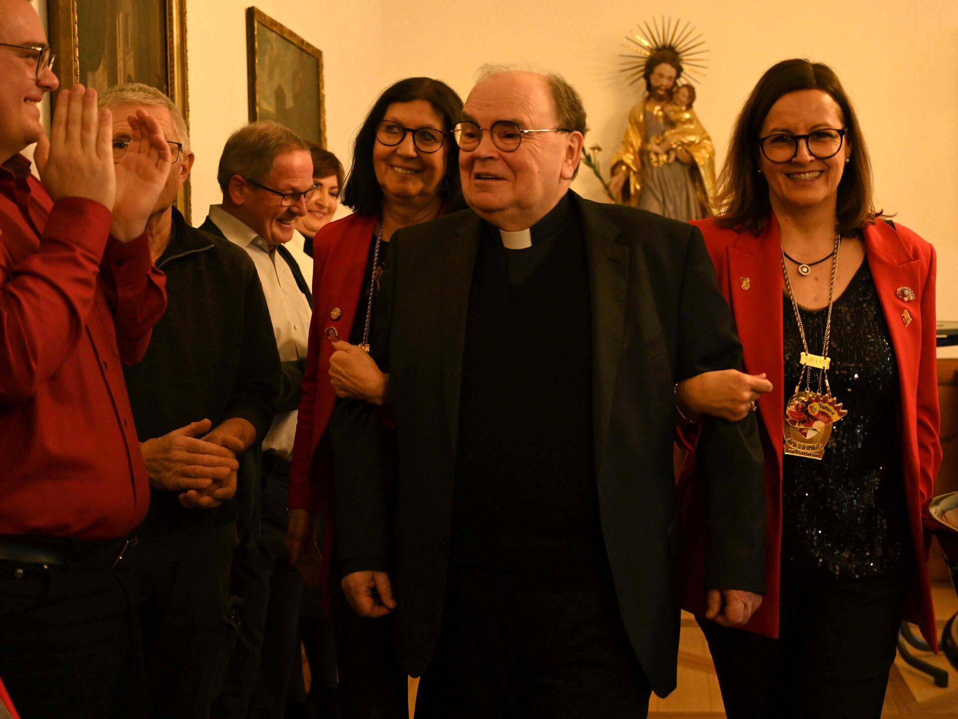 Das Motto sei sehr gut gewählt, bescheinigte Bischof Bertram den Vertreterinnen und Vertreter der Faschingsgesellschaft in seiner Begrüßung und lobte die besonders schönen Kostüme in diesem Jahr. „Ich wünsche Ihnen, dass Sie mit Begeisterung die Freude, die Sie mitbringen, an die Menschen weitergeben. Ihr habt die Mission, Botinnen und Boten der Freude zu sein“, richtete sich der Bischof an die Mitglieder der Hollaria und wünschte ihnen alles Gute für ihre Auftritte in der nun beginnenden Saison.