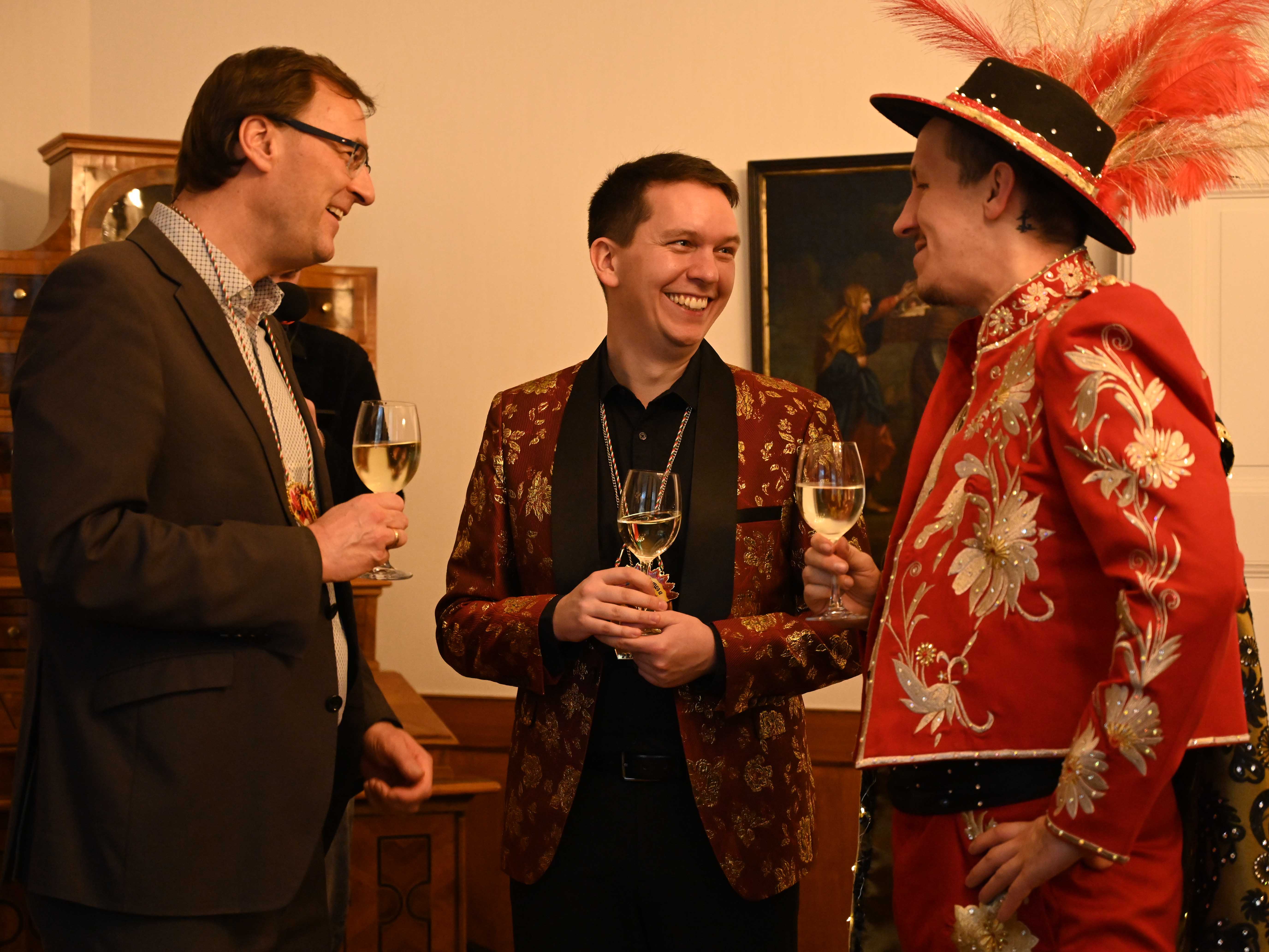 Heiter ausgelassene Stimmung und ein Hauch spanische Luft wehte an diesem Mittwoch durch das Augsburger Bischofshaus. Traditionell zur Eröffnung der Faschingssaison stattete die Faschingsgesellschaft Hollaria Augsburg Bischof Bertram und seinen Mitarbeitenden einen Besuch ab. Neben dem Prinzenpaar Sarah II. (Weiß) und Jason I. (Hassall) waren auch Mitglieder des Präsidiums vertreten und ließen das diesjährige Motto „Vamos a España“ – Auf nach Spanien!“ mit glitzernd roten Roben aufleben.