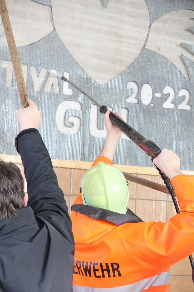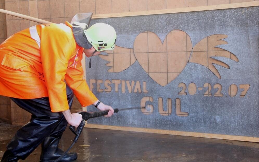 Augsburg (pba). Das Jugendfestival „GUL – Geist und Leben“ der Diözese Augsburg ist zwar erst im Juli, aber bereits jetzt laufen die Vorbereitungen auf Hochtouren. Für 20. bis 22. Juli 2012 werden das Festivalprogramm und der Zeltplatz für 2000 Jugendliche vorbereitet. Das Bischöfliche Jugendamt der Diözese Augsburg veranstaltet diesen „kleinen Weltjugendtag“ in Kooperation mit dem Bund der Katholischen Jugend (BDKJ) Augsburg auf dem Gelände des Klosters St. Ottilien. Eine besondere Aktion hat heute Diözesanjugendpfarrer Florian Wörner auf dem Gelände des Klosters durchgeführt: Mittels einer Schablone und einem Hochdruckreiniger hat Pfarrer Wörner das Logo des Festivals durch „reverse graffiti“ (eine spezielle Form von Gaffiti) kreiert.
