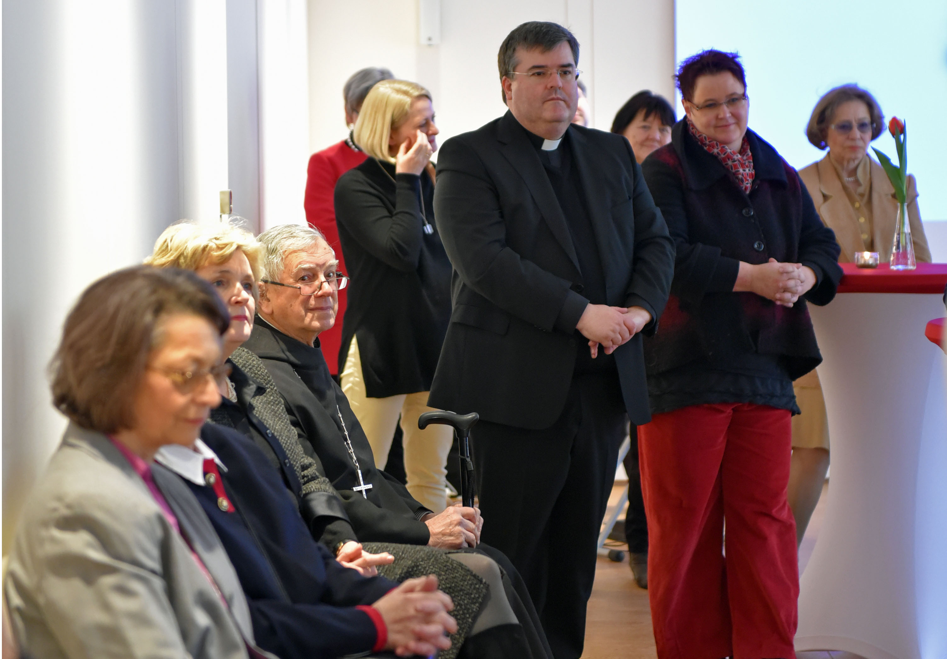 Beim anschließenden Empfang im Haus St. Petrus Canisius ging Gudrun Schubert, Vorsitzende des Sozialdienstes katholischer Frauen e.V., dem die Beratungsstellen angehören, auf die Entwicklung der Schwangerenberatung ein. Vor 15 Jahren habe eine „große Unsicherheit und Ungewissheit geherrscht, wie sich wohl alles entwickeln werde. Heute wissen wir, dass sich alles bestens entwickelt hat“, so Schubert. Dafür seien aber der Einsatz, die Motivation und das Durchhaltevermögen aller nötig gewesen. Alle Mitarbeiter hätten damit auf unterschiedlichste Weise dazu beigetragen, dass die Katholische Schwangerenberatung das sei, was sie sei, nämlich „eine wichtige Beratung, die von Anfang an ganz nah dran ist am Leben“, sagte die Vorsitzende. Ständig müssten sich die Beraterinnen neu an die gesellschaftlichen Verhältnisse anpassen. Schwangerenberatung sei eine Herausforderung, die große Flexibilität und Offenheit für Neuerungen voraussetze. Wichtig sei dabei ein „ganzheitlicher Blick auf das gesamte Frauen- und Familienleben“, so Schubert.
