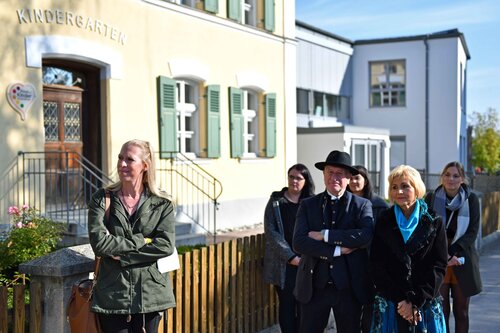 Ortswechsel: Nach der Heiligen Messe in der Kirche fand einen Steinwurf entfernt unter reger Beteiligung der Bevölkerung der Gottesdienst mit der Segnung des Kitaneubaus seine Fortsetzung, bei dem Bischof Bertram von einem Teil der Kindergartenkinder in deren neuem Domizil mit musikalischer Kostprobe und einigen Naturalien in Empfang genommen wurde. Dann folgten Gruß- und Dankesworte von Bürgermeister, Ministerin, Landrat, Architekt, Pfarrer und Kindergartenleiterin. Die Reden auf einen Nenner gebracht: Der Kitaneubau, der in wenig mehr als einem Jahr Bauzeit gestemmt werden konnte, war eine gelungene Kooperation, da Staat und Kommune sowie Bistum mit dem Kita-Zentrum St. Simpert und die Pfarrei als Träger an einem Strang zogen. Staatsministerin Carolina Trautner bedankte sich ausdrücklich beim gesamten Team des Kindergartens um die Leiterin Bettina Wenger, das in dieser herausfordernden Zeit eindrucksvoll zeige, wie wertvoll diese Arbeit ist. „Sie leisten unglaublich tolle Arbeit!“ Zudem wünschte sie allen Erzieherinnen, Kindern und Eltern einen gelingenden Start und „viele zauberhafte glückliche Momente in dieser neuen Einrichtung“.