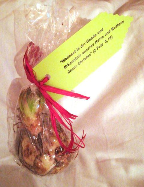 Eine Idee aus der Pfarrei Herz Jesu erreichte uns über Roswitha Böck und Barbara Götz vom Verband der Pfarrhäushälterinnen. In der Augsburger Stadtpfarrei bekamen alle neu- bzw. wiedergewählten Pfarrgemeinderatsmitglieder von Pfarrer Franz Götz ein symbolisches Geschenk überreicht: Blumenzwiebelchen mit Botschaften aus dem Neuen Testament: