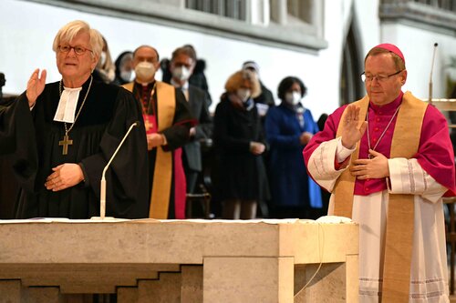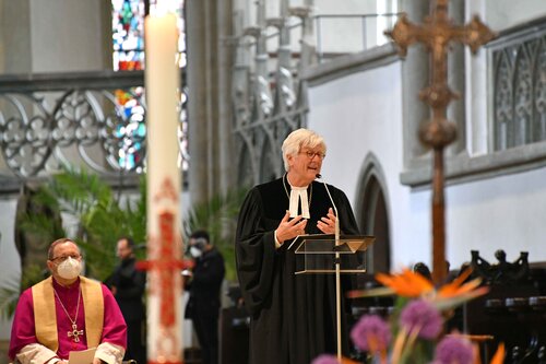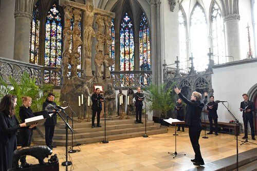 Musikalisch gestaltet wurde der Gottesdienst vom Vokalensemble AUXantiqua unter der Leitung von Domkapellmeister Stefan Steinemann und Domorganistin Claudia Waßner an der Orgel.