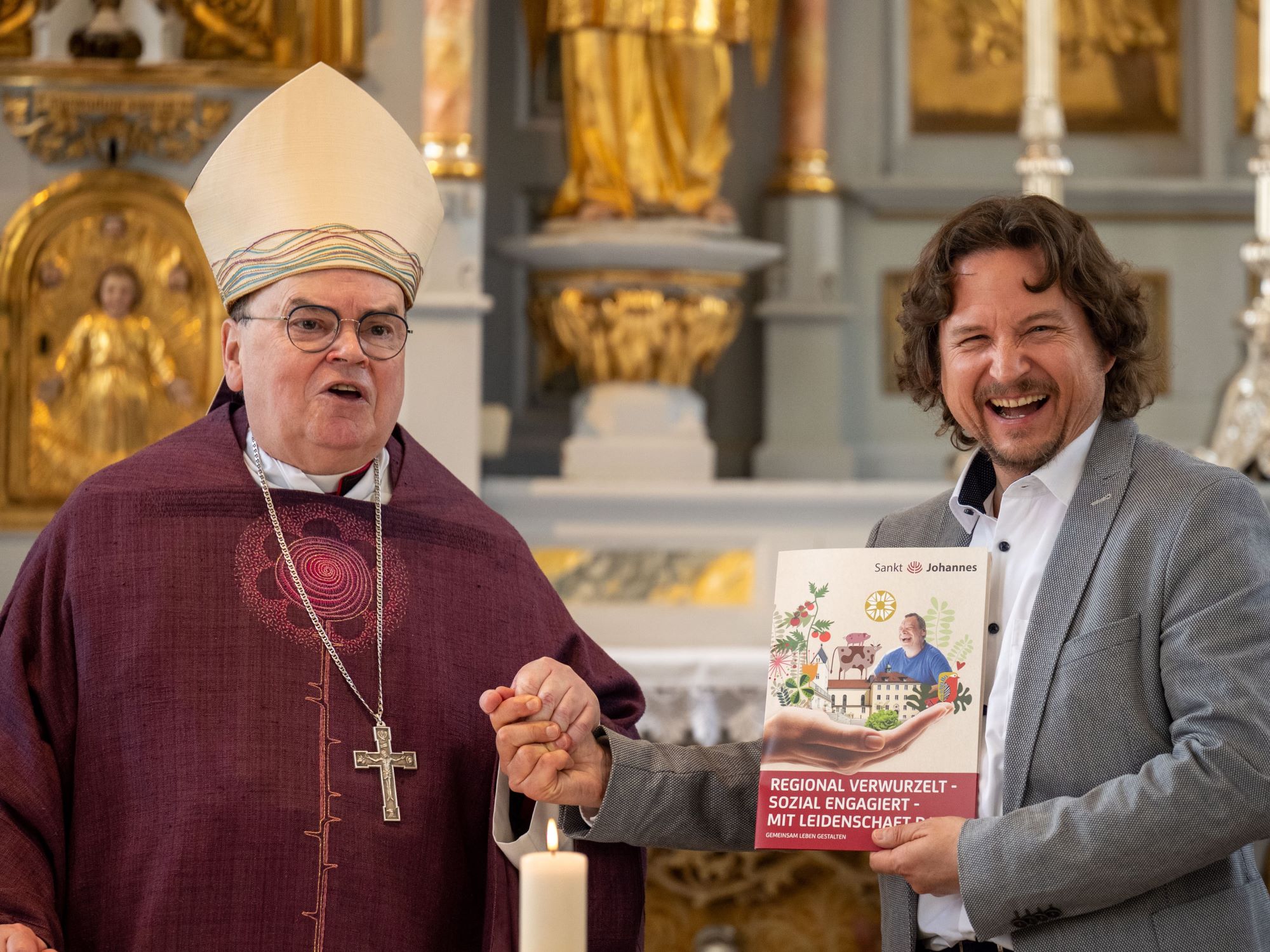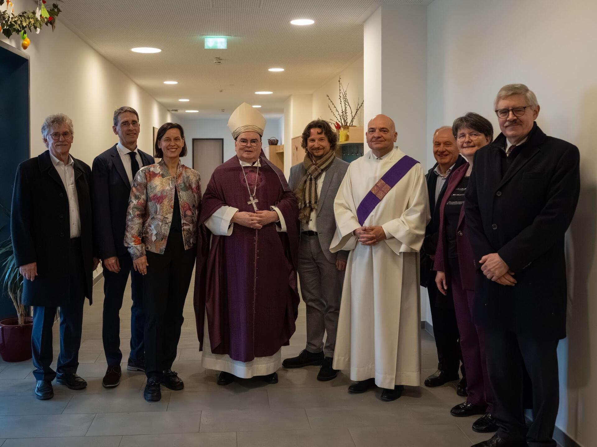 Wer den Zugang zu Gott finden wolle, der brauche dafür aber wiederum Andere als Wegbegleiter, betonte der Bischof abschließend. Somit sei auch die Stiftung Sankt Johannes eine spirituelle Gemeinschaft, in der die Mitarbeitenden Anderen den Weg zu Gott eröffneten und sich gleichzeitig selber darauf leiten ließen. „Die St. Johannesstiftung geht in die Zukunft. Dass diese Zukunft mit Gott verbunden bleibe, darum beten wir heute. Einem Brunnenplatz ähnlich werden auch hier viele unterschiedliche Menschen aufeinandertreffen. Mögen die neuen Räume dazu beitragen, dass alle, die hierherkommen, gute Nahrung finden und dass sie satt werden an Leib und Seele.“