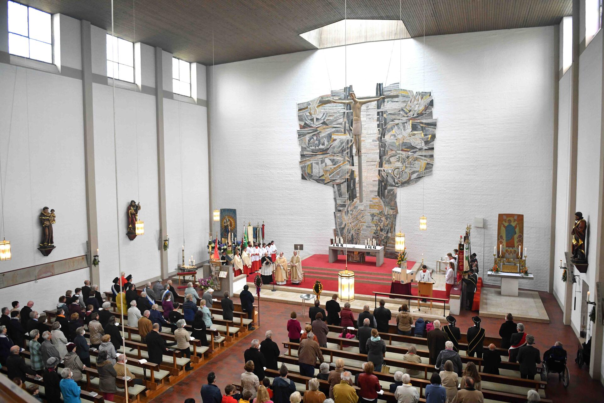 Zum Abschluss des Gottesdienstes, an den sich ein kurzer Festakt mit Grußworten samt Stehempfang anschloss, dankte Pfarrer Helmut Friedl allen, die zum Gelingen dieses Festes beigetragen haben, allen voran der Kirchenmusik unter der Leitung von Claudia Dahme, dem Altardienst und den Fahnenabordnungen der örtlichen Vereine und Verbände.
