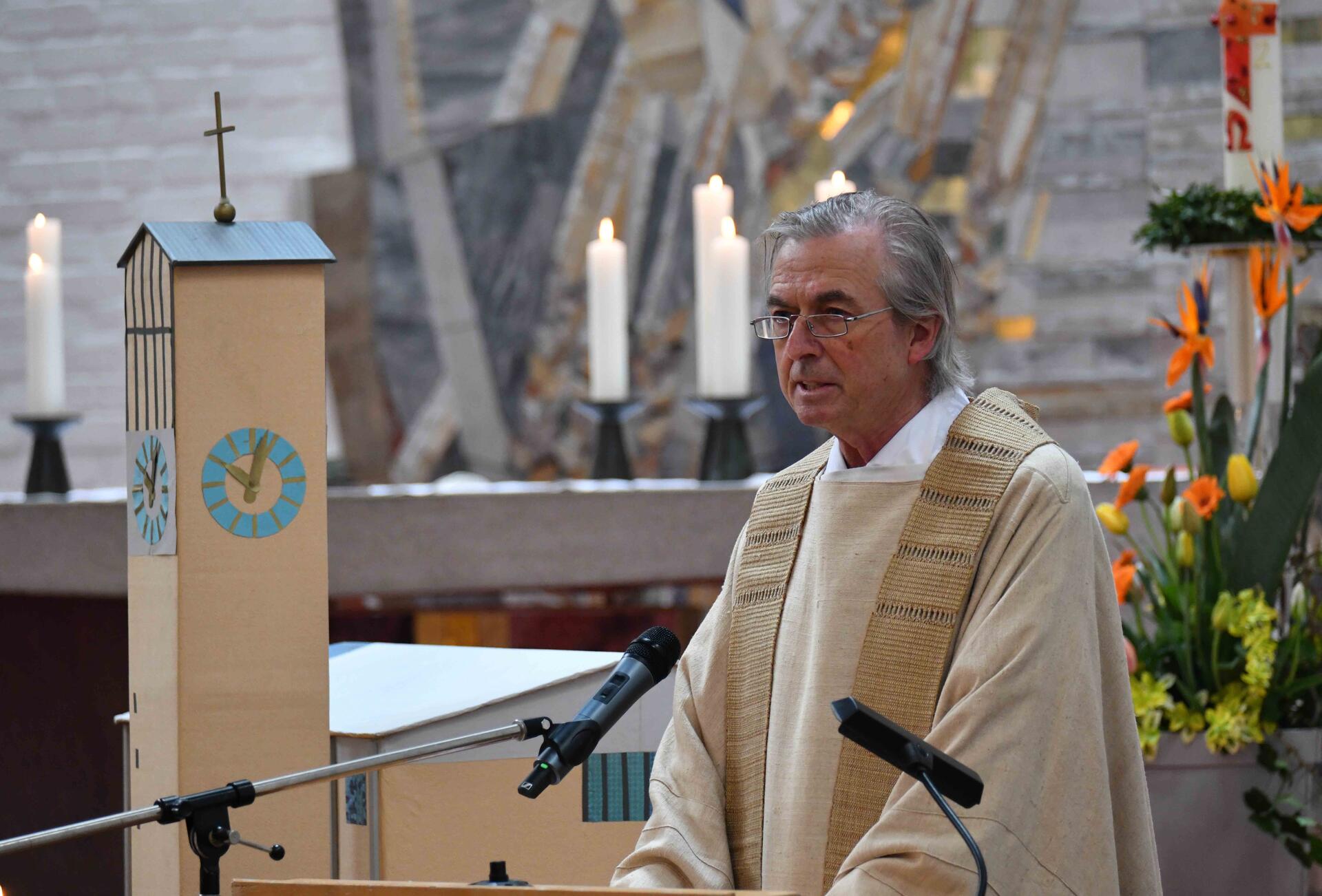 Bischof Bertram erinnerte an diesem Tag dankbar an die geistlichen Väter der Muttergemeinde, an Pfarrer Josef Hartl, der den Kirchbau aus Steinen anregte und umsetzte, und an Pfarrer Ludwig Epp, der „mit Engagement und Herzblut dem geistigen Haus unserer Pfarrgemeinde ein Profil“ gab. Auf diesem Fundament hätte der kürzlich verstorbene Pater Franz Schaumann weiterbauen können. Er sei stets darauf bedacht gewesen, Bewährtes zu bewahren, aber auch Neues anzudenken und notwendige Veränderungen vorzunehmen. „Denn eine Gemeinde hat nur dann Zukunft, wenn sie sich nicht nur an gestern erinnert, sondern sich auch mutig für morgen verpflichtet weiß“, bekräftigte der Bischof.