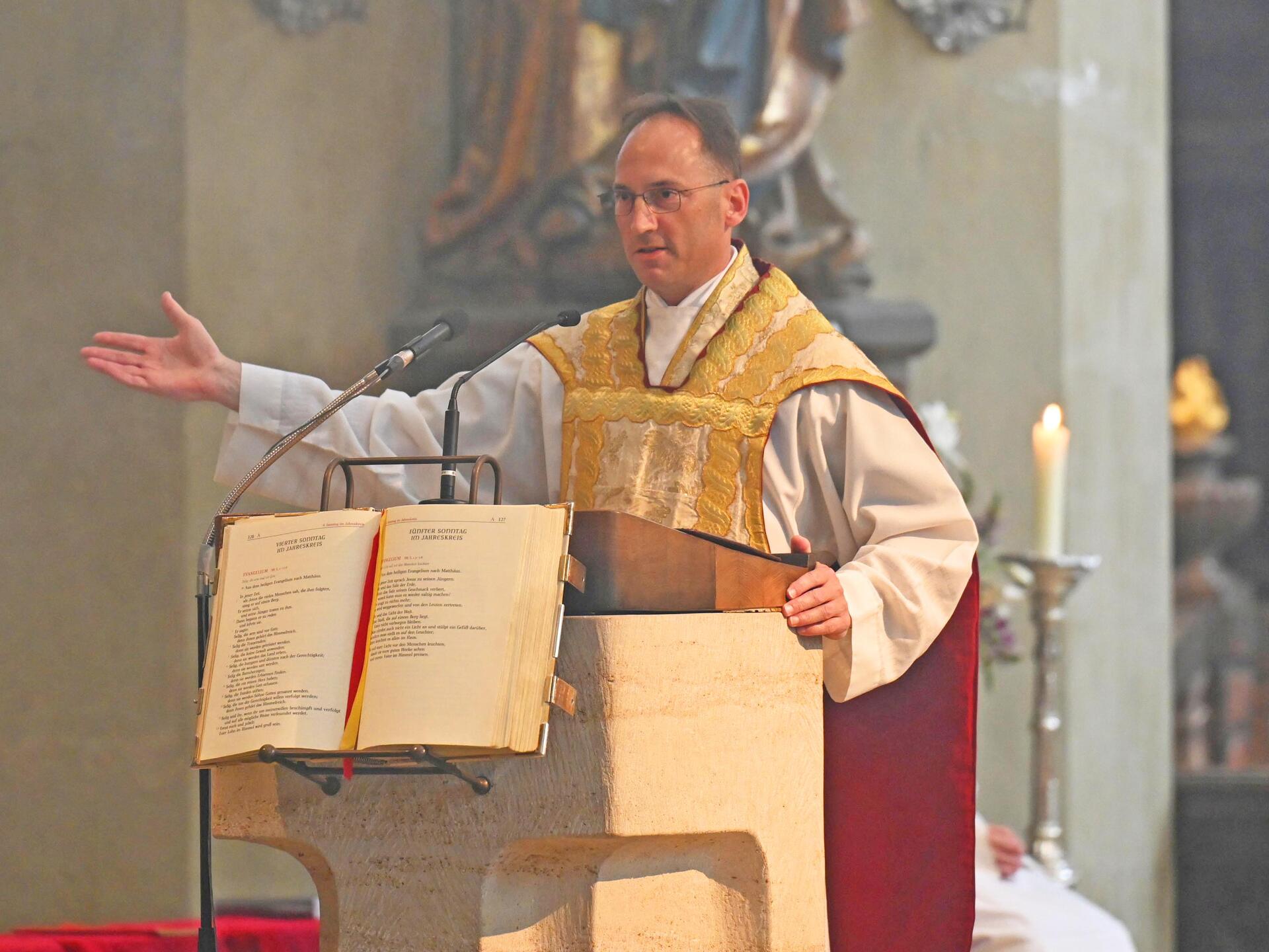 Und doch beginne dieses ewige Leben schon im Hier und Jetzt, durch unsere Verbindung mit Gott. Als Christen hätten wir damit ein Ziel vor Augen: „Unser Ziel ist die Herrlichkeit Gottes, dahin will Gott uns führen, auf Wegen, die nicht immer durchschaubar sind.“ Die Hoffnung aber schenke die Kraft, all die Schwierigkeiten im eigenen Leben zu überwinden. Auch der heilige Ulrich sei fest in Gott verankert gewesen. So habe er die Kraft gehabt, in einer Zeit großer Bedrängnis, die Menschen durch die Hoffnungsbotschaft des Glaubens wieder aufzurichten. Er habe Werkzeug sein wollen für diese gute Botschaft. Und so bat Pfarrer Hänsler auch ganz konkret: „Ulrich möge auch heute noch ein Hoffnungsträger für viele Menschen sein.“