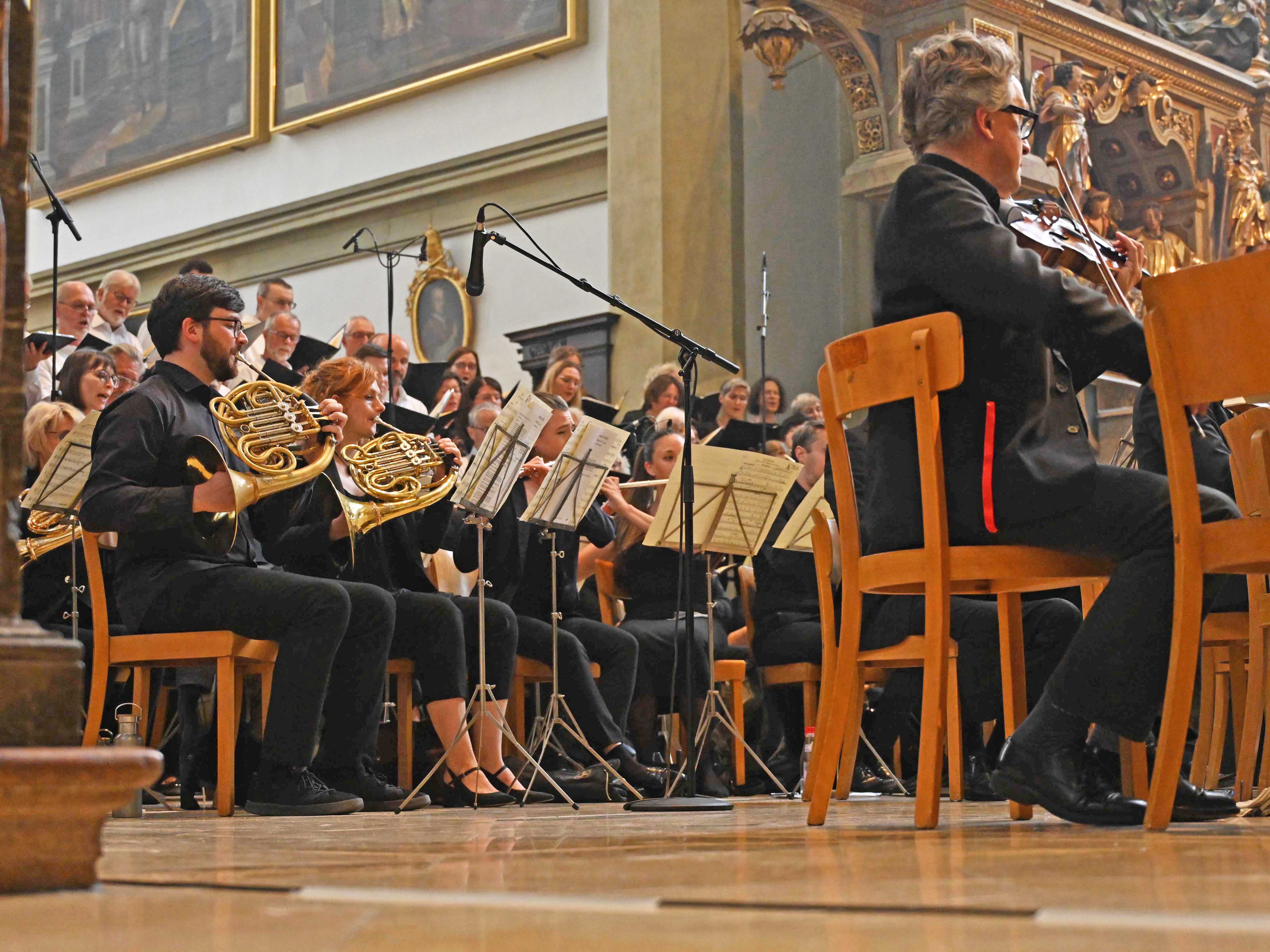 Der Basilikachor sang unter Leitung von Peter Bader neben dem Te deum von Anton Bruckner die Messe in D von Antonin Dvořák. Begleitet wurde er von Solisten und einem Orchester.