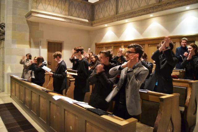 Um 18.00 Uhr, bei der Vorabendmesse in St. Stefan, Mindelheim, sang der Chor Teile aus der „Missa festiva“ von John Leavitt, einzelne Gesänge von Palestrina, Jiri Strejc, und Taizé-Lieder sowie ein amerikanisches Spiritual. Im gutbesuchten Gottesdienst wurde er herzlich vorgestellt von Dekan Andreas Straub und erntete großen Beifall. Nach einem reichlichen Abendessen mit dem liebenswürdigen Küchenteam fuhren die Schüler zurück nach St. Ottilien.