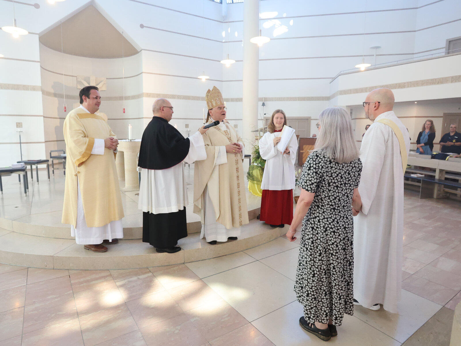 Die Arbeit der Notfallseelsorge sei das „Feldlazarett des Lebens“, so der Bischof in Anlehnung an Papst Franziskus. Besonders freue ihn, dass die Notfallseelsorge jedes Jahr zahlreiche neue Freiwillige in ihren Reihen begrüßen könne, die er gerne nach der Predigt formell in ihren neuen Dienst entsende: „Sie heben Verwundete auf, sie neigen ihnen Ihr Ohr zu, sie schauen genau hin und vor allem: Sie haben ein aufmerksames Herz, das für die Not der Vielen schlägt. Vergelt’s Gott!“ Mit diesem Tag begannen neun weitere Männer und Frauen ihren ehrenamtlichen Dienst in der Notfallseelsorge.