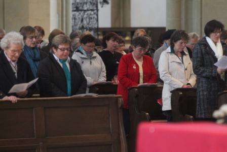 Augsburg (pba). Anlässlich des 90. Gründungsjubiläums des Vereins der Katholischen Pfarrhaus-Angestellten der Diözese Augsburg e.V. hat der Verbändereferent der Diözese Augsburg, Domkapitular Monsignore Dr. Wolfgang Hacker, den Beruf der Pfarrhausfrau als „Berufung das Reich Gottes zu verkünden“ gewürdigt. „Zu Ihrem Jubiläum möchte ich Ihnen ein besonderes Wort des Dankes für Ihre Loyalität und Treue zuteil werden lassen“, sagte Domkapitular Hacker in seiner Predigt im Rahmen des Festgottesdienstes heute in der Basilika St. Ulrich und Afra in Augsburg vor 150 Pfarrhausfrauen. „Ich danke Ihnen dafür, dass Sie nicht nur aus Sympathie einem Menschen gegenüber Ihren Dienst verrichten, sondern aus der Berufung heraus, das Reich Gottes zu verkünden“, wandte sich Monsignore Hacker an die Pfarrhausfrauen. Die Atmosphäre, die jede Pfarrhausfrau im Pfarrhaus schaffe, sei entscheidend dafür, ob das Evangelium von den Menschen, die das Haus besuchen, angenommen werde, so Monsignore Hacker. Es konzelebrierten 25 Priester die Heilige Messe.