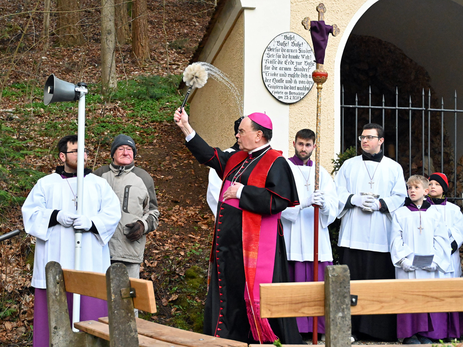Zur Wiedereröffnung reiste der Bischof erneut ins Kammeltal und segnete den Kreuzweg, dankte aber gleichzeitig auch allen Helfern und Spendern für ihre gewaltige Arbeit.