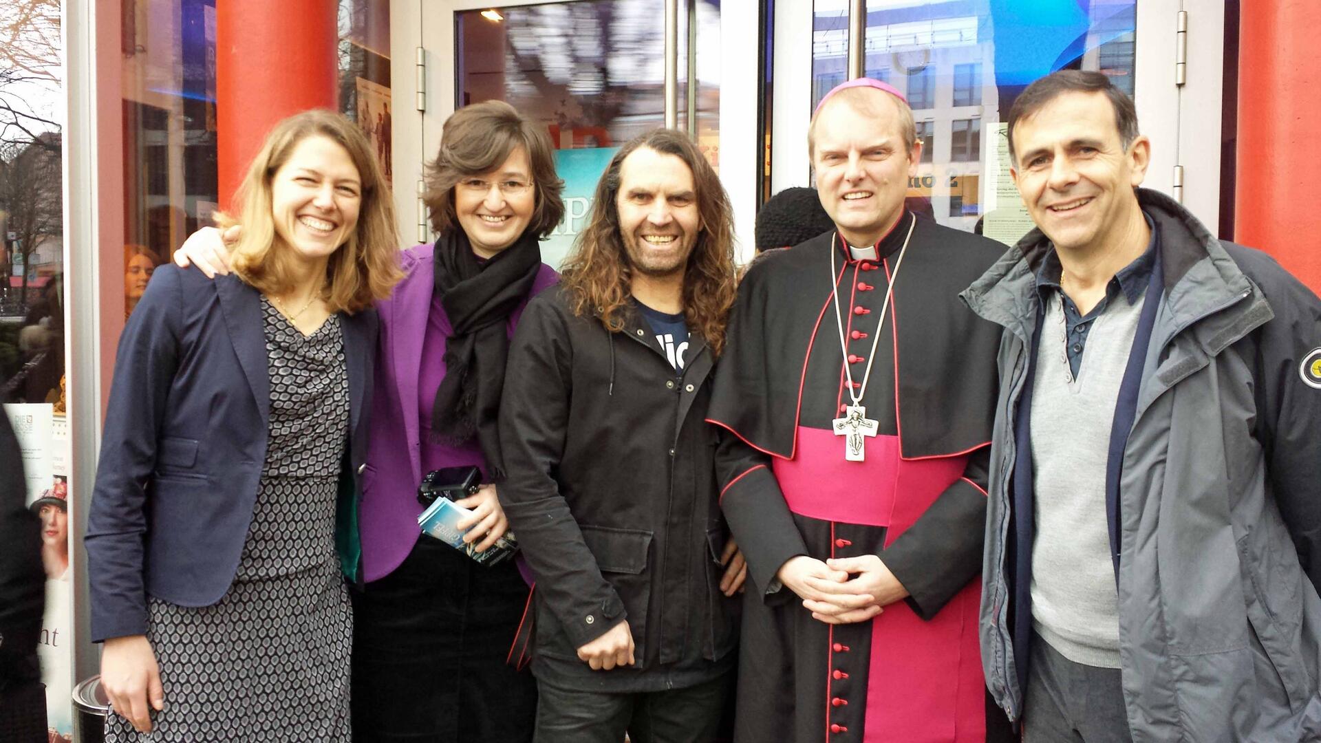 Nach der Filmvorführung fand mit den geladenen Gästen ein offenes Gespräch über den Film und die Gipfel des Lebens statt. Roland Kiechle (Jugend 2000) moderierte das Podiumsgespräch mit Weihbischof Florian Wörner, Extrembergsteiger Thomas Huber, Produzent Juan Manuel Cotelo und Vertreiberin Veronika Marton. Der Moderator Herr Kiechle fragte in die Runde, welche Szene am meisten beeindruckt hatte. Für Weihbischof Wörner war es die Feier der Heiligen Messe auf dem Gipfel. Weihbischof Wörner ist selbst auch begeisterter Bergsteiger und fühlt sich oben in den Bergen, in der Schöpfung Gottes, wohl. Als Jugendseelsorger, erzählte er, führte er oft Bibelbergwanderungen mit Jugendlichen durch. Dazu gehörte es immer auch, die Heilige Schrift zu deuten und die Eucharistie zu feiern. In den Bergen werde in einem die Gewissheit geweckt, dass es etwas Größeres gibt als die Berge. Es gebe ein großes Ziel, nämlich Gott.