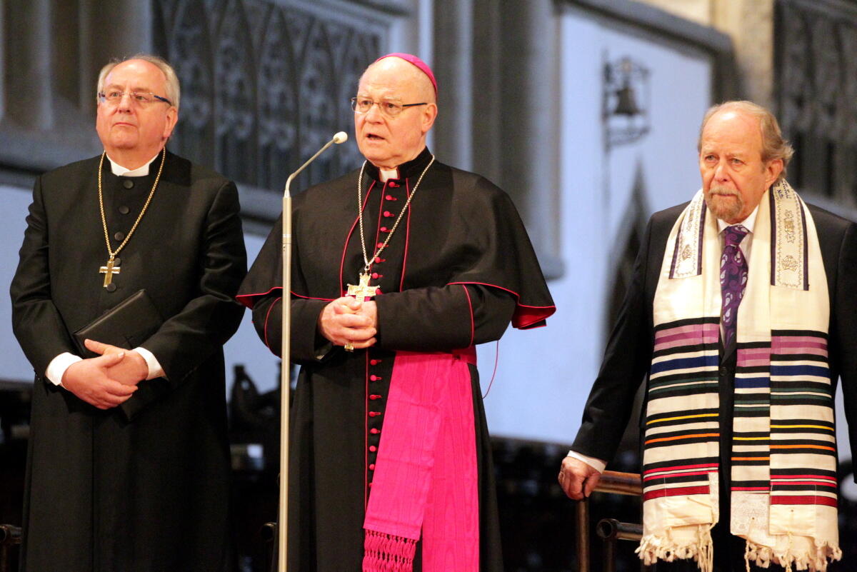 Augsburg (pba). Im Rahmen einer Christlich-Jüdischen Gemeinschaftsfeier im Augsburger Dom haben Bischof Dr. Konrad Zdarsa, Landesrabbiner Dr. h.c. Henry Brandt sowie Regionalbischof Michael Grabow heute für ein friedliches Miteinander der Religionen gebetet. „Shalom – der Friede sei mit Euch“, begrüßte Bischof Konrad die zahlreichen Gläubigen, die zur feierlichen Abschlussveranstaltung der „Woche der Brüderlichkeit“ in den Dom gekommen waren.