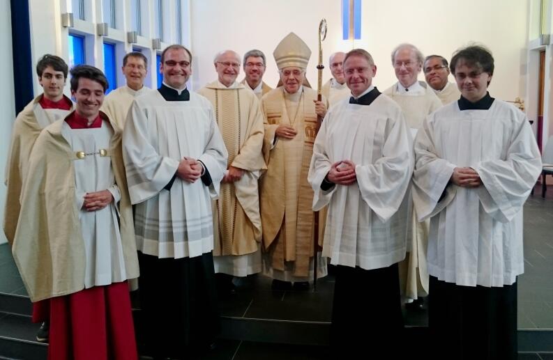 Am vergangenen Freitag sind in einer Festmesse in der Hauskapelle St. Claret in Weißenhorn drei Männer, die sich auf dem Weg zum Ständigen Diakon befinden, mit dem Dienst des Lektors und Akolythen beauftragt worden: Artur Waibl (Pfarrei Hlgst. Herz Jesu, Augsburg-Pfersee), Prof. Dr. Robert Georg Wittmann (Pfarrei St. Moritz, Augsburg) und Dr. Stefan Anton Wolitz (Pfarrei St. Anna, Dinkelscherben). Die Übertragung der Dienste nahm der Weihbischof em. Josef Grünwald im Auftrag von Bischof Dr. Konrad Zdarsa vor. Mit den Worten „Empfange das Buch der Heiligen Schrift. Trage das Wort Gottes getreu und vernehmlich vor, damit es in den Herzen der Menschen seine ganze Kraft entfaltet“ und „Empfange die Schale mit dem Brot und das Gefäß mit dem Wein für die Feier der Eucharistie. Lebe so, dass du würdig bist, beim Tisch des Herrn der Kirche zu dienen“ wurden die Dienste übertragen.
