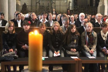 An dem von Maria-Ward-Schülerinnen gestalteten Gottesdienst im Mariendom nahmen auch der emeritierte Bischof von Augsburg, Viktor Josef Dammertz, Diözesanadministrator Weihbischof Josef Grünwald, der Ordensreferent der Diözese Augsburg, Domkapitular Prälat Dr. Bertram Meier, der BDKJ-Präses Pfarrer Ludwig Waldmüller, der Kolping-Präses Alois Zeller und der neue Dompfarrer Thomas Rauch teil. Schwester Mechthild Meckl CJ, Generaloberin der Congregatio Jesu aus Rom, besuchte gemeinsam mit ihren Augsburger Mitschwestern den Festgottesdienst.