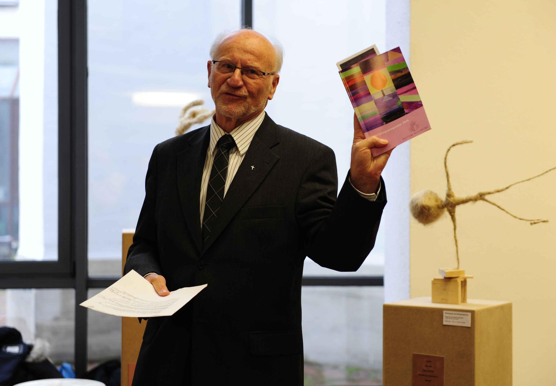 Über 100 Schüler, Lehrer und Eltern der Franz-von-Assisi-Schule in Augsburg haben gestern bei einer Vernissage im Haus Katharina von Siena ihre Bilder und Kunstobjekte präsentiert, die in das Fortbildungsprogramm für die pastoralen Dienste 2016 Eingang gefunden haben. „Wir wollten ein Fortbildungsprogramm konzipieren, das schön anzusehen ist, das man gerne zur Hand nimmt. Ihr habt mit Euren Bildern dazu beigetragen, dass dies gelungen ist“, wandte sich Domkapitular Prälat Peter C. Manz an die zahlreichen Schülerinnen und Schüler, die zur Ausstellungseröffnung gekommen waren.