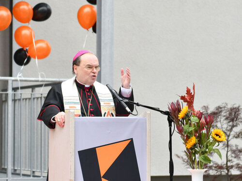 „Ich stelle mir vor, dass sich heute auch der Himmel freut“, sagte der Vorsitzende der Kolping-Stiftung Augsburg, Diözesanpräses Wolfgang Kretschmer, zu Beginn. Der Ort habe eine lange Tradition, denn schon nur wenige Jahre nach ihrer Gründung 1859 habe die Stiftung an dieser Stelle ein Gasthaus erworben, in dem katholische Handwerksgesellen Wohnung, Bildung und Unterstützung finden konnten. Das im Laufe der Jahrzehnte hier gewachsene Gebäudeensemble sei in den letzten Jahren aufwändig generalsaniert und modernisiert worden, so der Diözesanpräses, der Bischof Bertram „dankbar um den Segen Gottes“ bat.