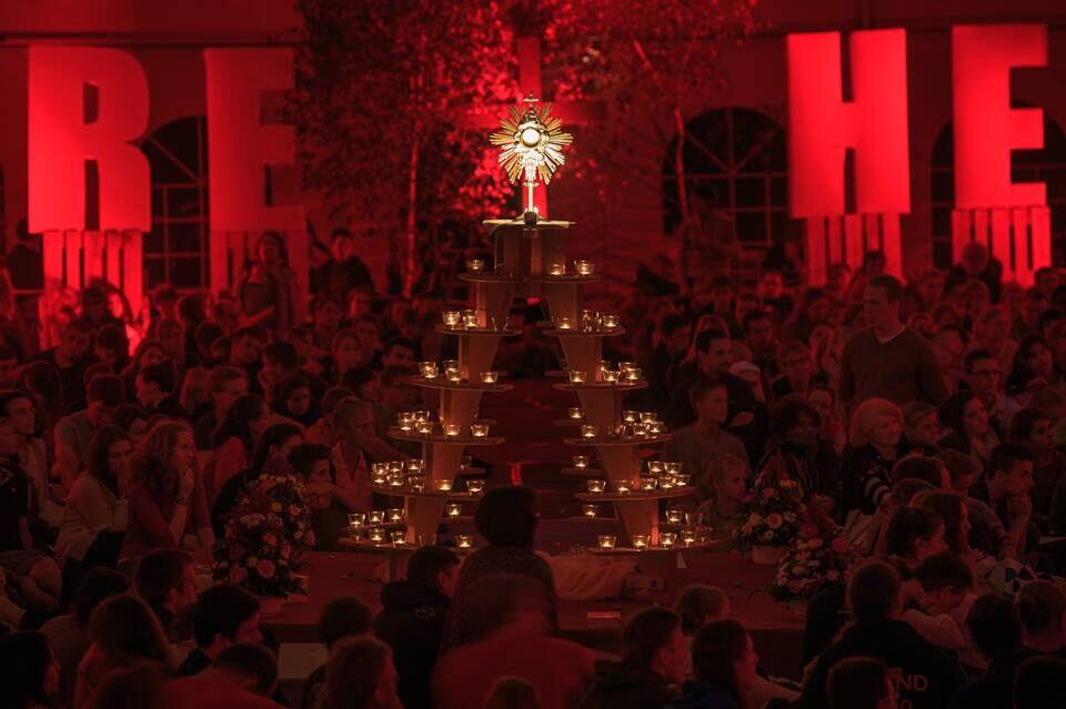 (Marienfried/JUGEND 2000) Unter dem Motto "Selig, die ein reines Herz haben; denn sie werden Gott schauen" (Mt 5,8) hat die JUGEND 2000 vom 12.-16. August 2015 zum vierten Mal in Folge das Internationale Prayerfestvial veranstaltet. Über 2.000 Teilnehmer aus ganz Deutschland und den Nachbarländern folgten der Einladung zu diesem Gebetstreffen mit Festivalcharakter nach Marienfried bei Neu-Ulm. Bei mitreißendem Lobpreis, hochsommerlichen Temperaturen und dem begeisternden Eröffnungstalk von Pater Agustino Torres CFR aus den USA durften die Jugendlichen und jungen Erwachsenen bereits zum Auftakt des Prayerfestivals mit dem Feuer des Heiligen Geistes in Berührung kommen. Nach der feierlichen Eröffnung mit der Heiligen Messe nahm Jesus im Sakrament der Eucharistie inmitten aller Teilnehmer Platz auf dem "brennenden Dornbusch" - einer mit Kerzen beleuchteten Holzpyramide, auf der er während des gesamten Prayerfestivals gegenwärtig war.