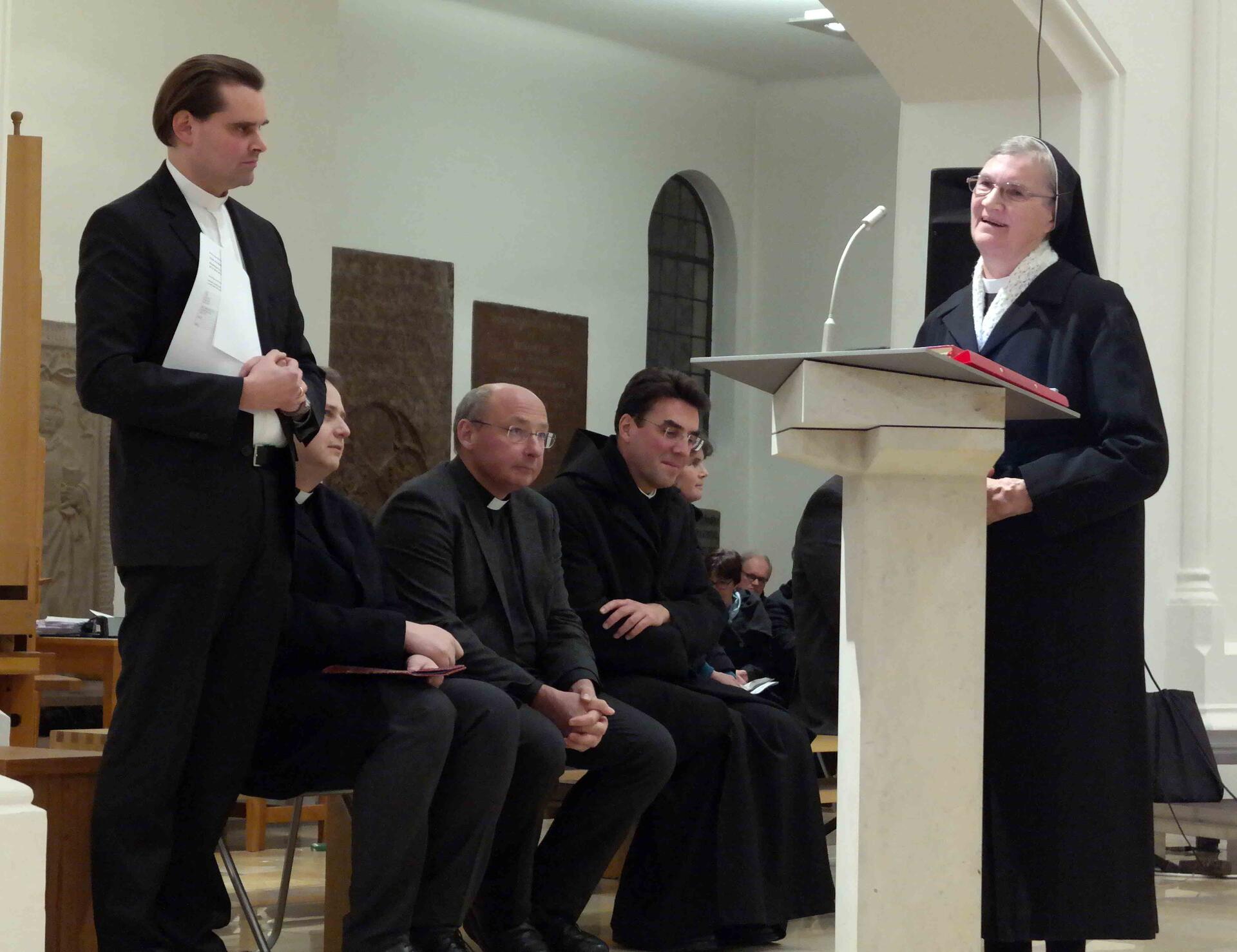 Im Anschluss an den Impulsvortrag gaben drei Ordensleute sowie ein Eremit persönliche Zeugnisse von Ihrer Berufung. „Gott hat eine große Sehnsucht nach eucharistischer Anbetung in mich gelegt. Die Einsamkeit ist ein Raum, in den ich mich zurückziehen kann“, begründete Eremit Tobias Hiermer seine Entscheidung zu einem Leben in Abgeschiedenheit.