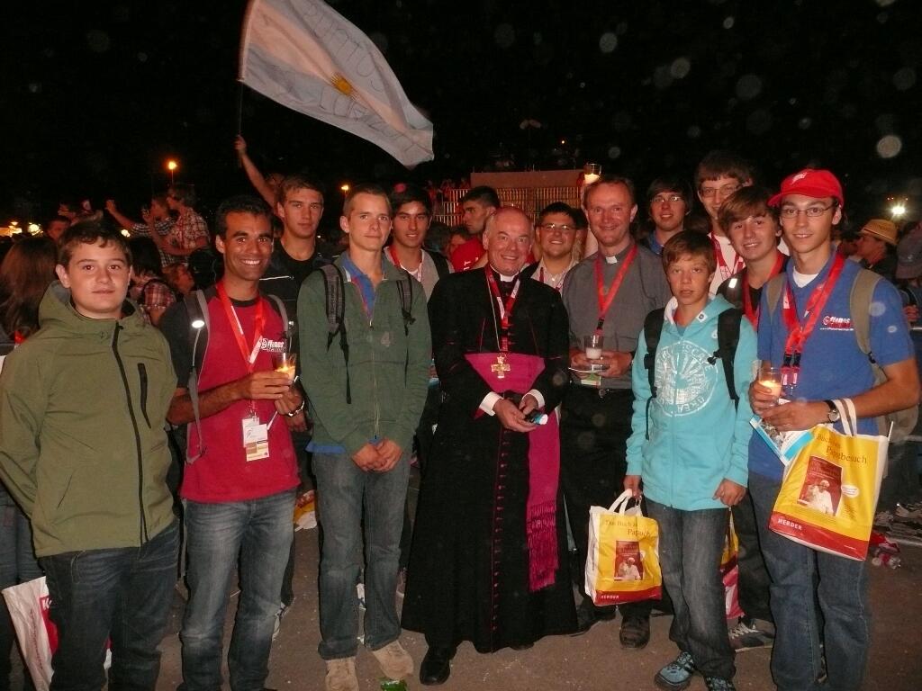 Augsburg (pba). Auf eine Wallfahrt nach Freiburg zu Papst Benedikt XVI. haben sich 16 Jugendliche des Offenen Seminars mit ihrem Leiter, Pfarrer Bernhard Waltner, am Samstag, 24. September, aufgemacht. Nach einem gemeinsamen Gebet am frühen Morgen in der Kirche in Leipheim, sind die Jugendlichen gestartet. In Freiburg waren sie beim Gebet im Münster, bei der Vigilfeier auf dem Messegelände und beim Abschlussgottesdienst in nächster Nähe beim Papst ganz vorne mit dabei.