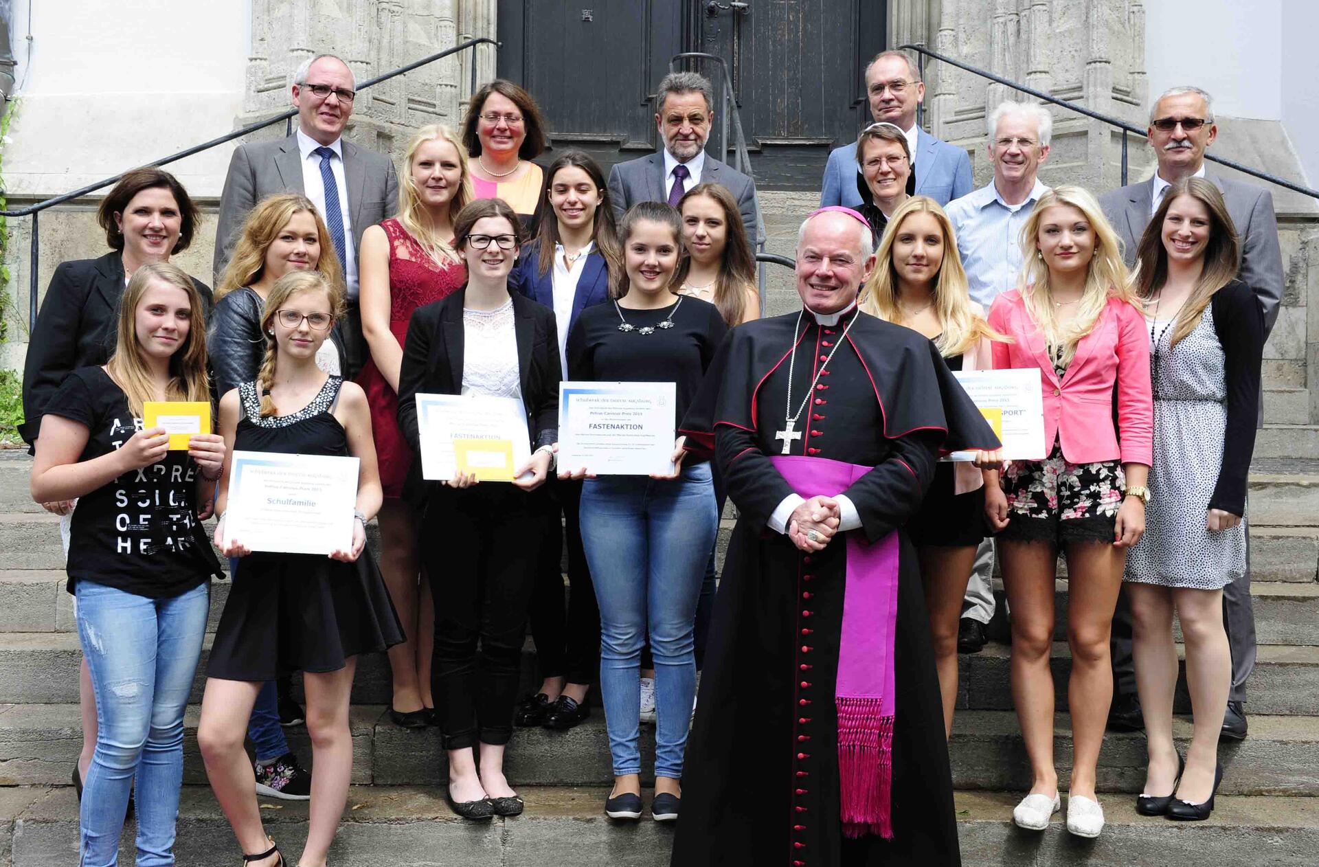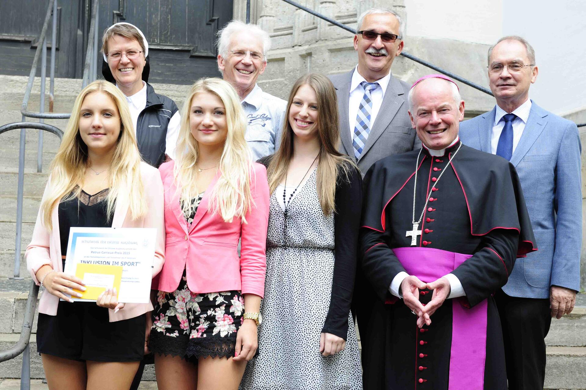 Augsburg (pba). Weihbischof Dr. Dr. Anton Losinger und Ulrich Haaf, Direktor des Schulwerks der Diözese Augsburg, haben heute den Petrus-Canisius-Preis des Schulwerks der Diözese Augsburg verliehen. Der Preis ging zu gleichen Teilen an das P-Seminar „Inklusion im Sport“ am St. Bonaventura Gymnasium Dillingen, an die Maria-Ward-Realschule Schrobenhausen sowie das Marien-Gymnasium und die Marien-Realschule in Kaufbeuren.