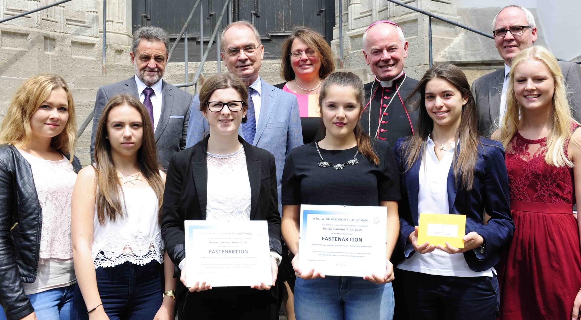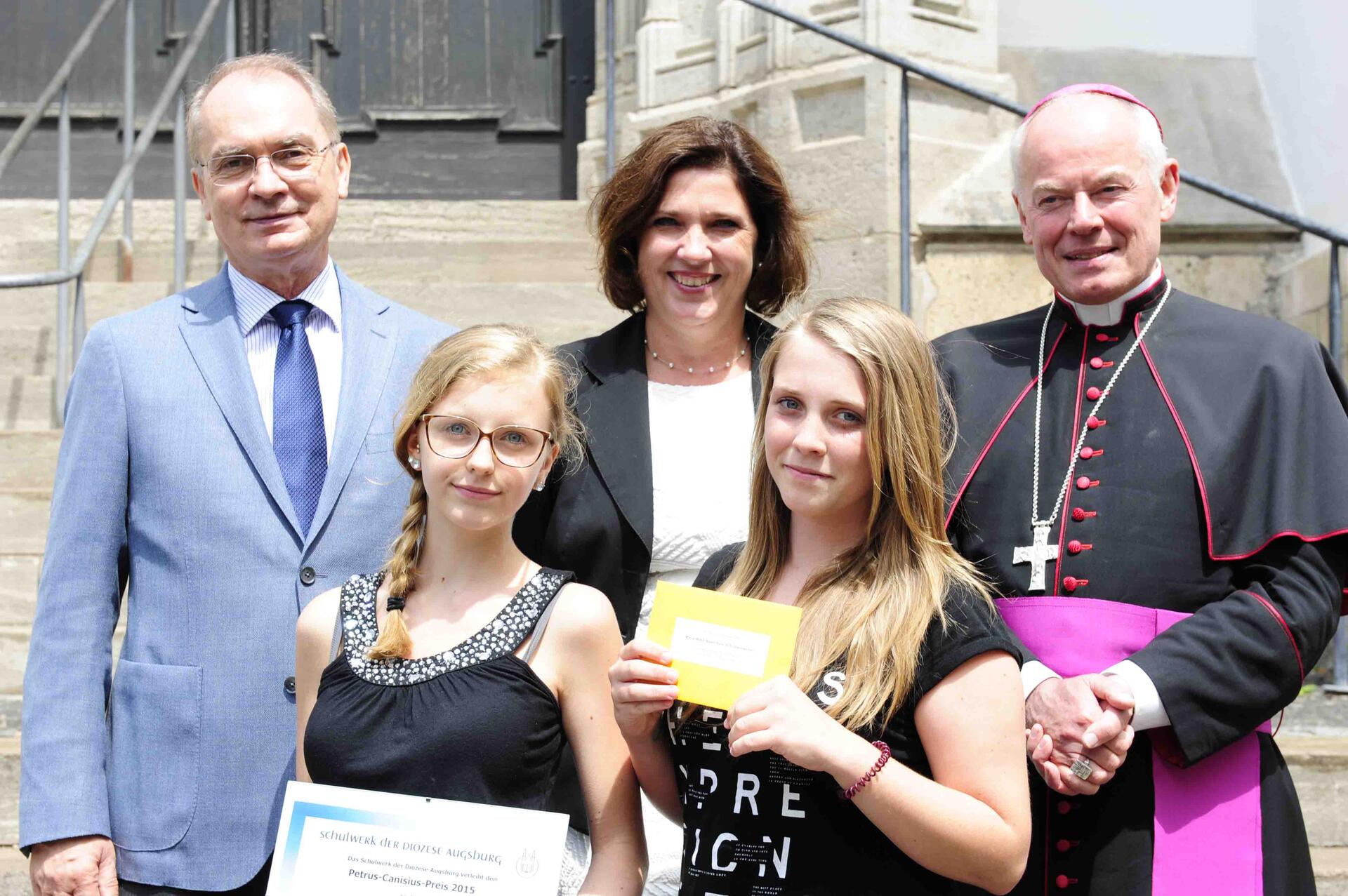Der jeweils mit 500 Euro dotierte Petrus-Canisius-Preis wurde in diesem Jahr zum vierten Mal verliehen. Er ist eng mit dem Namen des heiligen Petrus Canisius verbunden: Schule und Wissenschaft mit Glaube und Nächstenliebe in Einklang zu bringen war ein besonderes Anliegen des Heiligen. Petrus Canisius wirkte im 16. Jahrhundert als Professor an mehreren Universitäten und war von 1559 bis 1566 auch Domprediger in Augsburg.
