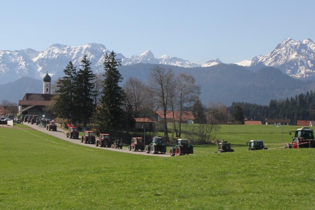 Rund 220 Traktoren glänzten gestern bei Traumwetter und vor herrlichem Alpenpanorama in Speiden und warteten auf die Fahrzeugsegnung durch Weihbischof Florian Wörner. Unter dem Motto "Bauer sucht Gott" hatte die Katholische Jugendstelle Kaufbeuren eine Traktorensternwallfahrt nach Maria Hilf organisiert. Bevor es auf die Reise nach Speiden ging, hatten alle Traktoren einen Startimpuls erhalten. Neben den Landkreisen Ostallgäu und Oberallgäu waren auch Schlepper aus Weilheim-Schongau der Einladung gefolgt und erhielten die Segnungsplakette mit der Aufschrift "Gottes Segen auf allen Wegen, Feldern und Wäldern". Über 1200 Landwirte, Oldtimerfans und Gläubige feierten den Festgottesdienst mit, darunter auch Schirmherrin Maria Rita Zinnecker (Landrätin), die ebenfalls mit einem Traktor auf das Festgelände vorfuhr.