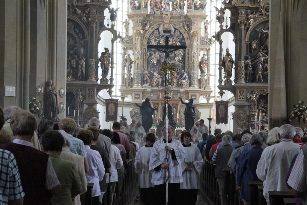 Augsburg (pba). Der Augsburger Weihbischof Josef Grünwald hat am heutigen Montag für die Regionen Neu – Ulm und Altbayern in der Basilika St. Ulrich und Afra einen Wallfahrtsgottesdienst gefeiert. An der Heiligen Messe im Rahmen der Ulrichswoche nahmen außerdem Mitglieder des Priester- und Diakonenvereins teil.