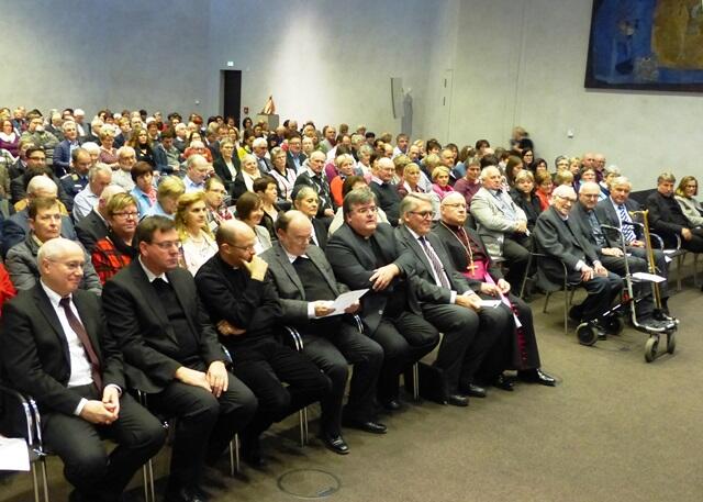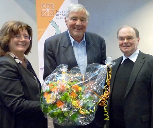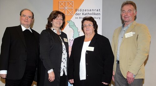 Der Festredner Prof. Dr. Thomas Sternberg blickte bei seinem anschließenden Vortrag „Laien tragen Verantwortung – 50 Jahre Pfarrgemeinderäte“ auf die lehramtlichen Veränderungen zu Beginn der 60er Jahre zurück, die ein selbstständiges und selbstbewusstes Engagement der katholischen Laien erst ermöglicht hätten. Zugleich habe es in Bistümern wie Augsburg bereits in der ersten Hälfte des 20. Jahrhunderts die ersten Ansätze für Pfarrgemeinderäte, damals „Pfarrausschüsse“ genannt, gegeben. Mit Blick auf den Rückgang der Hauptamtlichen – Kleriker wie Laien – in der Kirche betonte er, dass die ehrenamtlichen Laien künftig die Sache vor Ort selbst in die Hand nehmen müssten. Vor Ort entstehe Gemeinde, sie werde konkret in der Familie, in der Nachbarschaft und weiteren sozialen Netzwerken. Gremienarbeit sei kein Selbstzweck, die kirchlichen Räte hätten einen Auftrag nach außen: die Botschaft Jesu Christi lebendig zu halten. Zugleich plädierte Sternberg für einen Ausbau der synodalen Strukturen in der Kirche und eine entschiedene Aufarbeitung und Prävention der Fälle sexuellen Missbrauchs.Auf seiner konstituierenden Vollversammlung wurde die Vorsitzende Hildegard Schütz mit überwältigender Mehrheit wieder gewählt. Erste stellvertretende Vorsitzende ist wieder Sieglinde Hirner. Martin Gregori gelang es überraschend, sich als zweiter stellvertretender Vorsitzender gegenüber Max Weinkamm durchzusetzen. Helmut Mangold, der kürzlich sein 80. Lebensjahr vollendete, gehört dem neuen Diözesanrat nicht mehr an. Er war bereits in der vorherigen Amtsperiode von den Mitgliedern hinzugewählt worden, konnte diesmal aber nicht die erforderliche Stimmenanzahl erreichen. Der Bischöfliche Beauftragte für den Diözesanrat, Domdekan Dr. Bertram Meier, dankte Mangold für 36 Jahre Mitgliedschaft im Diözesanrat, dem er insgesamt 20 Jahre vorstand, und davon 8 Jahre auch Vorsitzender des Landeskomitees der Katholiken in Bayern war. Mangold habe stets ein ausgleichendes Wesen gehabt und viele Spannungen zu integrieren vermocht. „Ad multos annos“ – „auf viele (gute) Jahre“ im Kreise der Familie und unter dem Segen Gottes.