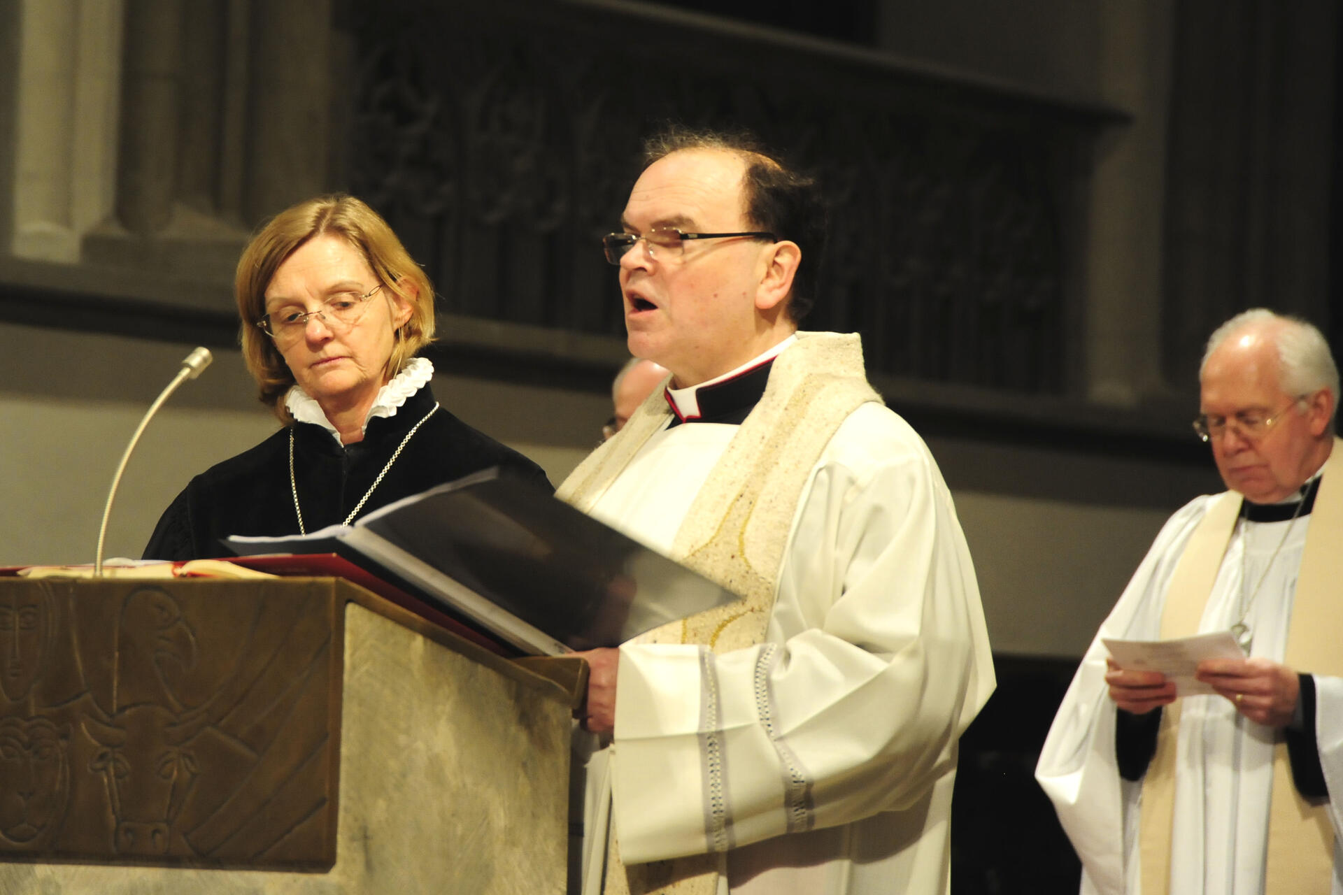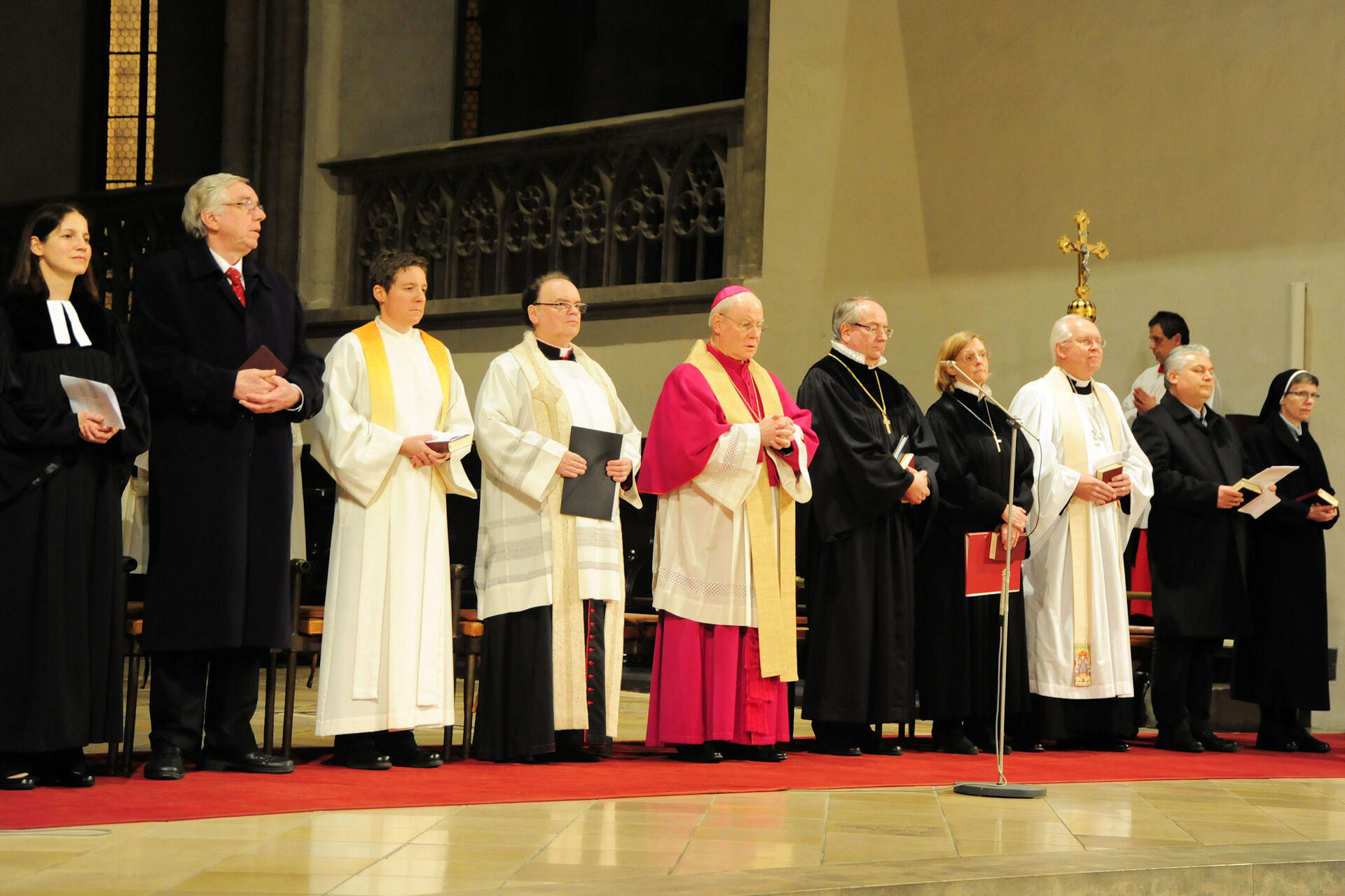 In die Gestaltung des Gottesdienstes waren neben der evangelischen Stadtdekanin Susanne Kasch und Domdekan Prälat Dr. Bertram Meier als Ökumene-Beauftragter des Bistums auch Alexandra Caspari von der Alt-Katholischen Gemeinde, Dennis Krumlauf von der anglikanischen Gemeinde, Christian Hafner von der Baptistengemeinde und Daniyel Akgüc von der syrisch-orthodoxen Gemeinde als Mitglieder der Arbeitsgemeinschaft christlicher Kirchen (AcK) eingebunden.