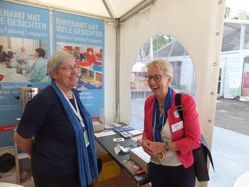 Die fünf Vorstandsmitglieder des höchsten Laiengremiums der Diözese Augsburg erlebten ein offenes und interessiertes Katholikentagspublikum, mit dem man „über Gott und die Welt“ habe sprechen können, erzählt Ulrike Dreher aus Memmingen. Spürbar kamen die Fragen von Menschen, für die eine bayerische Diözese eine unbekannte Größe darstellt: „Was ist ein Bistum?“ – „Wo liegt Augsburg?“ Über die Fremdheit der Dreifaltigkeit oder der Beziehung der Katholiken zur Muttergottes kam es zu Gesprächen, die den Kernbereich des Christlichen berührten. Von „Seelsorgsgesprächen“ spricht Diözesanratsvorsitzende Hildegard Schütz aus Krumbach.