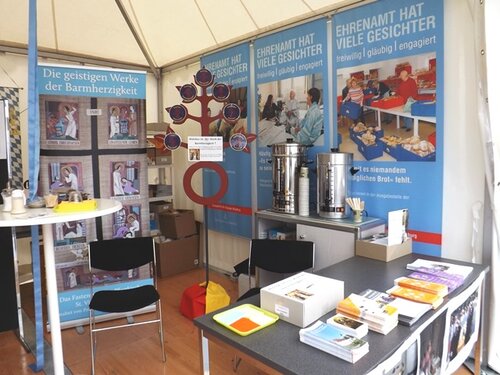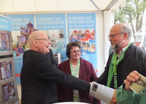Die Standleitung in Leipzig hatte Ernst Schmidhuber aus Hohenpeißenberg inne. Auch er erlebte die vielen Nichtgetauften als neugierige und offene Gesprächspartner. Wie schon in Regensburg hatten die Augsburger ihre Knotenlöserin „im Gepäck“: Gebetsbildchen und eine lange Schnur, in die jeder seinen persönlichen Knoten machen konnte, kamen hervorragend an. Dass jeder sein persönliches Problem ganz für sich und unsichtbar inmitten des Katholikentags als ein Anliegen für die Fürsprache der Gottesmutter festknoten konnte, sprach viele Besucher an, berichtet Schmidhuber, der die Gemeinschaft katholischer Soldaten (GKS) im Diözesanrat vertritt.