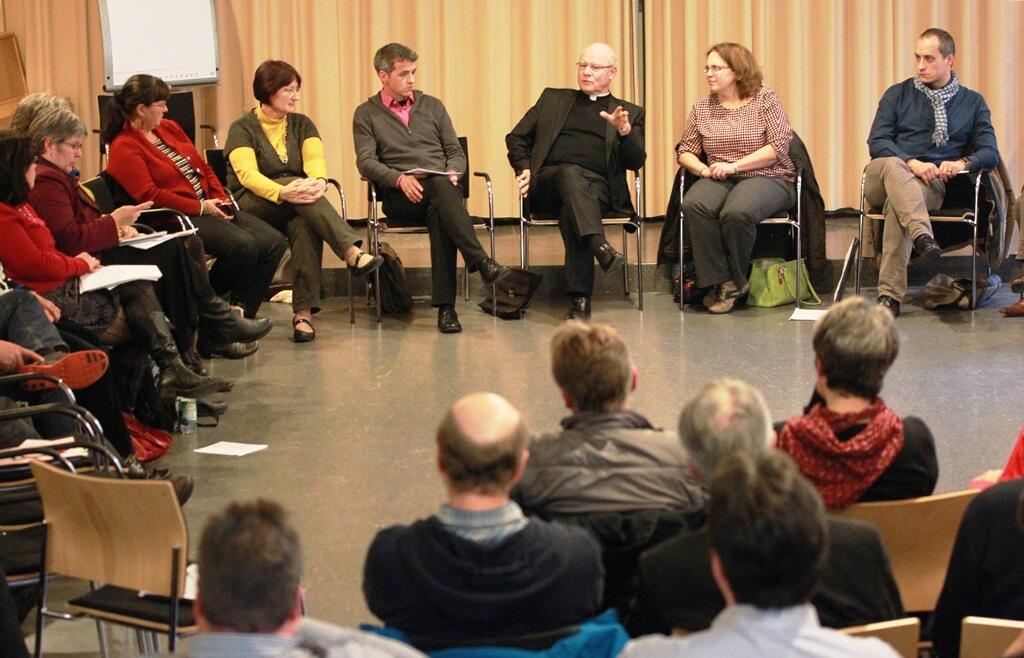 Der Bischof zeigte sich erfreut, dass sich der menschenwürdige Umgang mit der Not der vielen Flüchtlingen hierzulande als gemeinsames wichtiges Anliegen wahrgenommen werde und informierte über die derzeitigen Überlegungen und Entwicklungen im Bereich der Flüchtlingsarbeit des Bistums. Hervorgehoben wurde in diesem Zusammenhang die in der Diözese bereits an vielen Stellen von engagierten Gläubigen praktizierte Willkommenskultur und Offenheit vor Ort. Auch die Auseinandersetzung mit neuen alltäglichen Herausforderungen (z.B. Beheimatung angesichts größerer Seelsorgeräume, ethische Fragen rund um das Sterben oder der Umgang mit aus der Kirche ausgetretenen Personen und ihren Angehörigen) waren Thema.