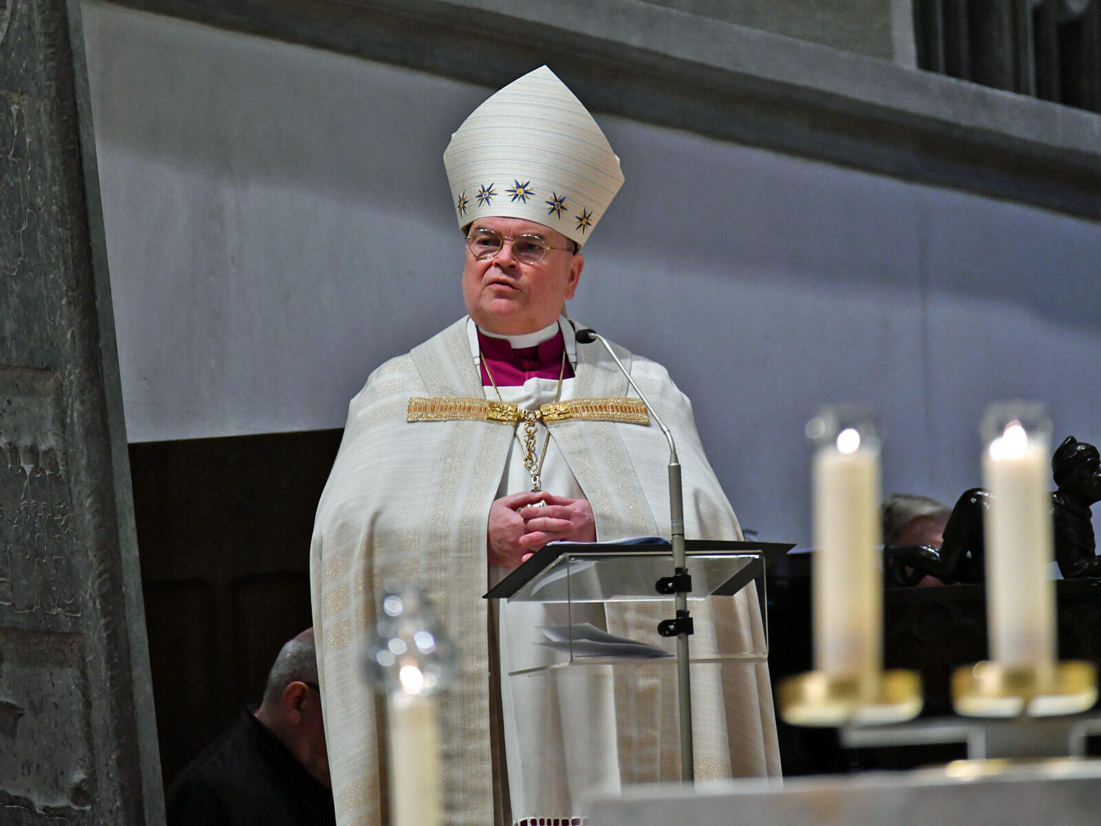 Im Hinblick auf die vieldiskutierte Position der Kirchen bezüglich des Krieges in der Ukraine betone Bischof Bertram, dass die militärische Gegenwehr zwar ein Land vor der Vernichtung retten könne, aber letztendlich nicht der militärische Sieg im Krieg, sondern der Sieg über den Krieg an sich diesen auch beenden werde. Nur der Verzicht auf Waffengewalt ermögliche eine endgültige Versöhnung. Letztendlich würden alle nur verlieren, wenn sich die derzeitigen Kampfhandlungen fortsetzten. Das Wort Gottes könne dann auch dazu beitragen, eine verbale Abrüstung voranzutreiben und die Konfliktparteien an den Verhandlungstisch zu bringen: „Nur wenn Menschen – wie Maria – sich unter den Willen Gottes stellen, der das Leben will und nicht den Tod, wird Friede sein. Nur wenn Menschen – wie Maria – um den Geist des Friedens beten und sich ihm öffnen, wird Friede werden.“