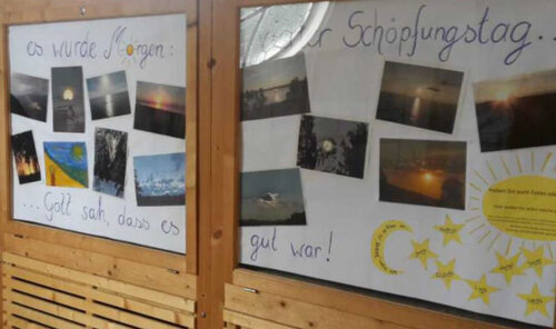 Um diesen Gedanken innerhalb der Gemeinden der Pfarreiengemeinschaft Kaufbeuren zu verbreiten, integrierte der Arbeitskreis an sieben aufeinanderfolgenden Sonntagen in jeweils einer der Gemeinden Impulse zum jeweiligen Schöpfungstag im Gottesdienst. Parallel dazu gab es in den Kirchenräumen eine Ausstellung mit thematisch passenden Bildern, gestaltet von Kommunionkindern, Jugendlichen und anderen Gemeindemitgliedern.
