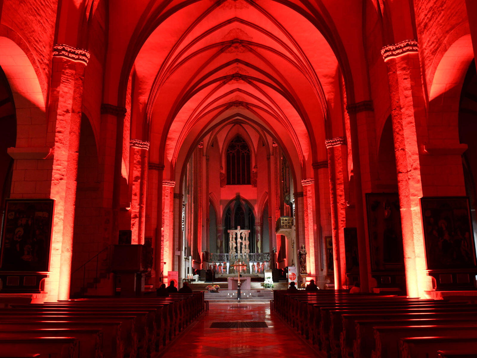 Das internationale kirchliche Hilfswerk „Kirche in Not“ widmet sich mit seiner Arbeit den verfolgten, bedrängten und notleidenden Christen weltweit. Seit 2015 lädt die Organisation zum sogenannten „Red Wednesday“ ein, in dessen Rahmen jedes Jahr verschiedene öffentliche Gebäude und Kirchen als Zeichen der Solidarität rot beleuchtet werden - heuer unter anderem der Augsburger Dom.
