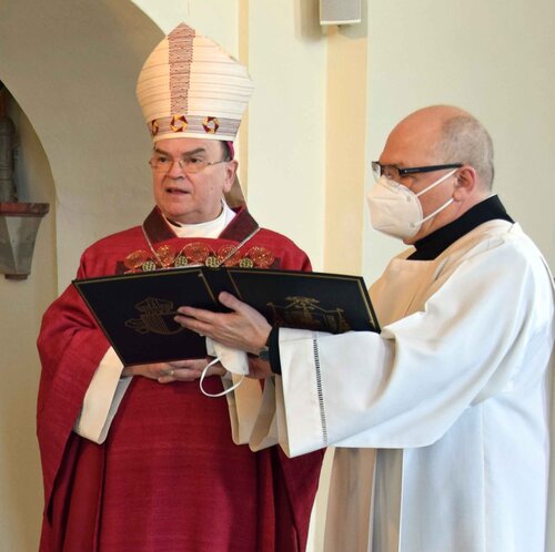 „Gestratz und der Bischof sitzen in einem Boot“, stellte Bischof Bertram in seiner Predigt fest und ging auf die Auswirkungen der Pandemie ein. Denn gestern vor einem Jahr sei er in München auf die bayerische Verfassung vereidigt worden und dabei habe er erfahren: „Mit der Bischofsweihe nächste Woche wird es nichts“, erinnerte er sich an seine wegen Corona um elf Wochen verspätete Weihe am 6. Juni des vergangenen Jahres.