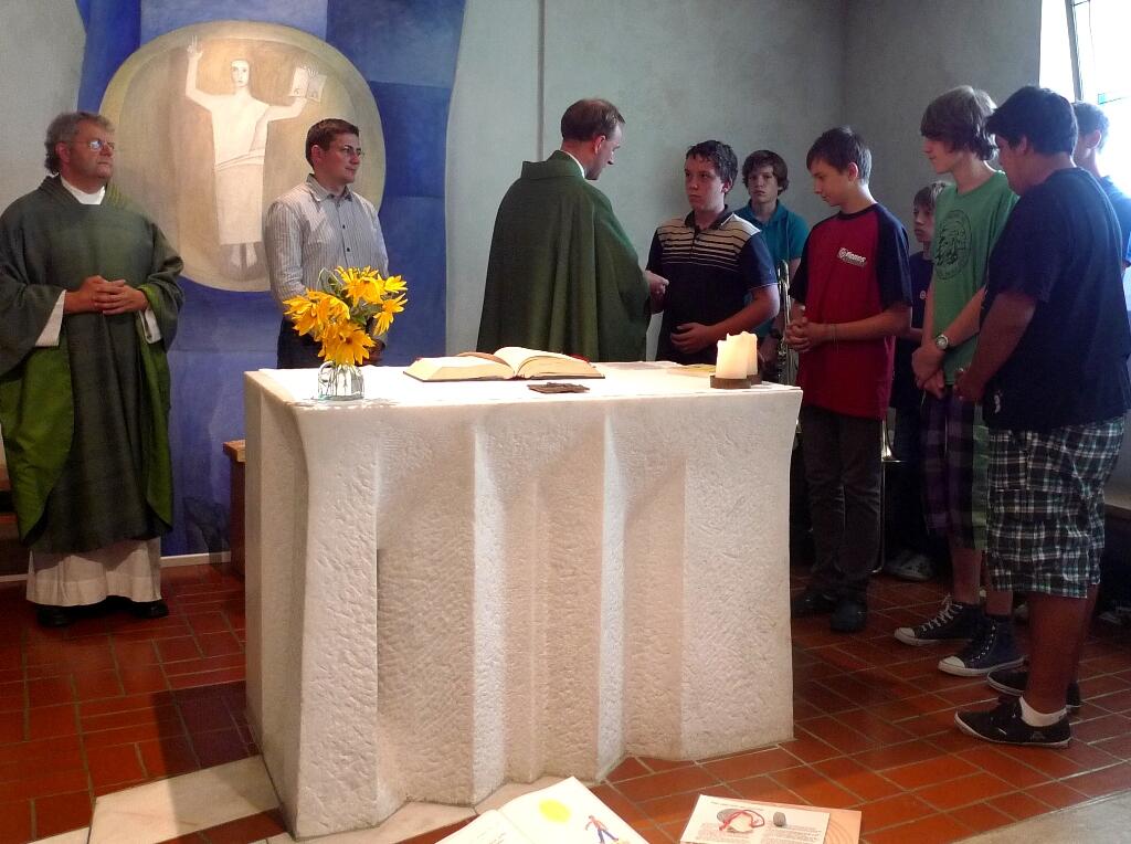 Augsburg (pba). In der letzten Ferienwoche sind 32 junge Männer aus der Diözese Augsburg zum Sommerkurs des Offenen Seminars im Jugendhaus Elias in Seifriedsberg zusammengekommen. Eine Woche lang beschäftigten sich die jungen Männer mit dem Thema: „Steh auf, werde Mensch“. Dabei setzten sich die Jugendlichen über ihren eigenen, spirituellen Lebensweg auseinander. Das sechsköpfige Leitungsteam mit Bildungsreferenten Andreas Wachter und Pfarrer Johannes Rauch bereitete eine intensive Woche vor und gestaltete die Tage mit verschiedenen Themen und täglichen Impulsen sowie Morgen – und Abendgebeten.