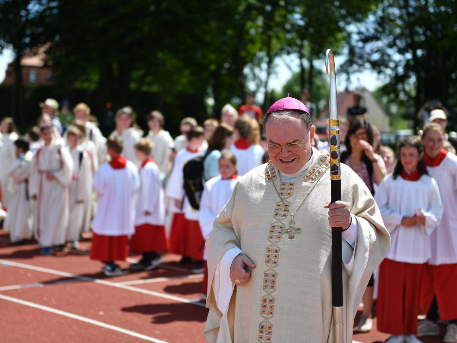 In dem Festgottesdienst am Marienplatz erzählte Bischof Bertram davon, wie er als kleiner Bub unbedingt auch Ministrant werden wollte und „unermüdlich, fast lästig“ seinem Heimatpfarrer damit in den Ohren lag. „Als Ministrant darf ich ganz nah bei Jesus sein“, sei seine Motivation damals gewesen. Später habe er sich auch für die geistliche Laufbahn entschieden, obwohl er bald lernen musste: „Menschen in der Kirche – auch Pfarrer und Bischöfe – machen Fehler. Auch sie sind keine Heiligen!“ Dennoch stehe fest: Vor Gott stehen zu dürfen verändere die Menschen. So, wie sie sind, dürften die Ministrantinnen und Ministranten vor Gott hintreten – mit all ihren Stärken und Schwächen, Talenten und Grenzen. „Ihr, liebe Kinder und Jugendliche, seid die Zukunft der Kirche! Meldet Euch zu Wort, übt Kritik, wo Ihr meint, da läuft etwas schief, und vor allem: Packt an! Jesus braucht keine Schlafmützen, sondern junge Leute, die Gas geben, die Tempo machen, die durchstarten – nach der Corona-Zeit.“