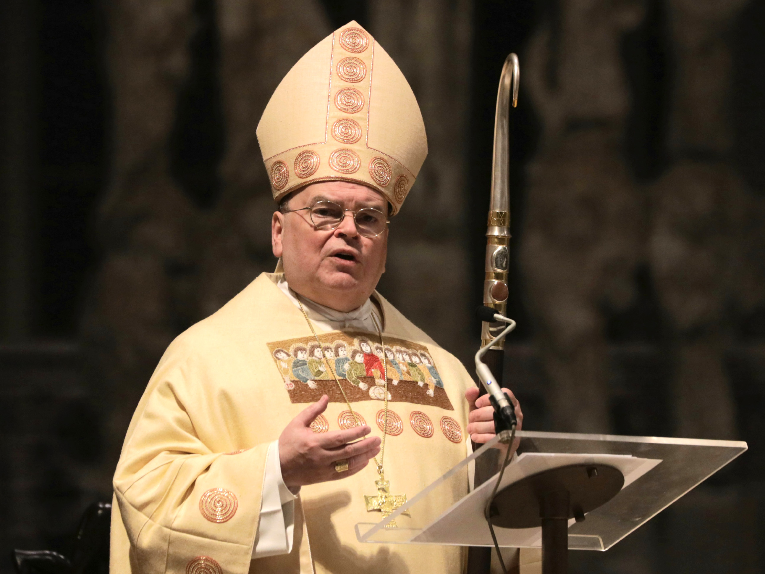 „Wenn ein Mensch spürt“, so Bischof Bertram in seiner Predigt, „dass seine Stunde kommt, da er für lange Zeit oder für immer Abschied nehmen muss, dann lässt er seine Familie und seine Freunde noch einmal zusammenrufen. Und in dieser Stunde versucht er, den Menschen seines Vertrauens in aller Dichte noch einmal das mitzuteilen, was ihm selbst im Leben wichtig und wesentlich war. Die heutige Stunde ist eine Stunde des Abschieds: kein Abschied mit leeren Händen, ein Abschied mit vollen Herzen: die Stunde einer Testamentseröffnung. 'Tut dies zu meinem Gedächtnis.' Heute Abend wird das Neue Testament eröffnet, und ich darf Ihnen versichern: Keiner wird leer ausgehen. Jeder ist zum Erben bestellt. Doch das Testament fordert mutige Erben, keine Nachlassverwalter, sondern Zukunftsbereiter.“