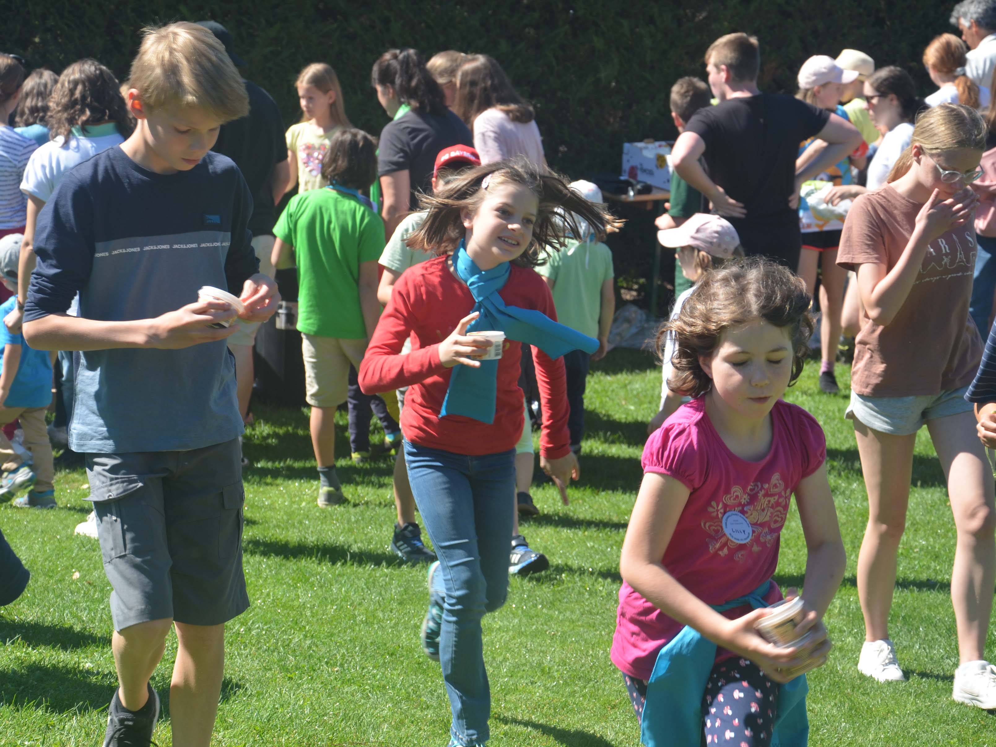 Erstmals begegneten sich alle Familien, die an verschiedenen Orten in der Diözese losfuhren, im österreichischen Neumarkt/Egna, wo eine Brotzeit auf alle wartete und als kleines Extra ein Eis für die Mädchen und Buben, die sich beim Ausstieg nicht von 34 Grad verdrießen ließen. Für viel Schwung vor der Weiterfahrt sorgte eine Pfingstandacht mit Musik und besinnlichen Gedanken. Kolpingpräses Pfarrer Wolfgang Kretschmer und seine Helfer achteten darauf, dass nach dem Sitzen im Bus Körper und Seele in Bewegung kamen.