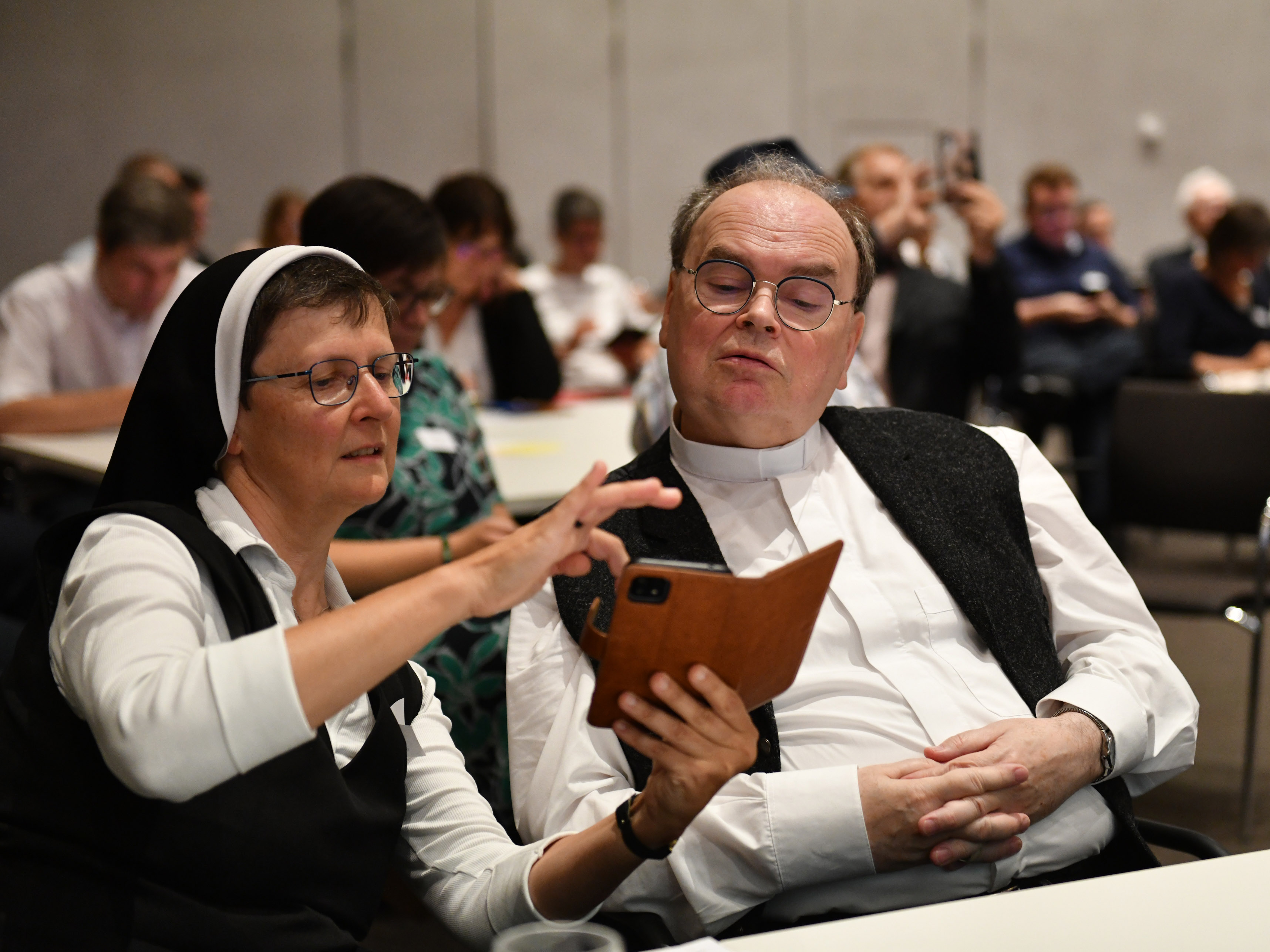 In Gruppenarbeit und mit vorbereiteten Impulsfragen konnten sich die Teilnehmerinnen und Teilnehmer anschließend über das Gehörte und eigene Erfahrungen mit KI austauschen. Der Referent stellte dabei auch die Interaktion mit einem Chatbot vor. Die in der Pastoral tätigen Frauen und Männer konnten dem digitalen Assistenten Fragen stellen, die in der Seelsorge ebenso vorkommen. Danach wurden die Antworten des Bots verglichen und diskutiert, bevor in einer größeren Podiumsdiskussion nochmal abschließend alle Ergebnisse zusammengetragen wurden.