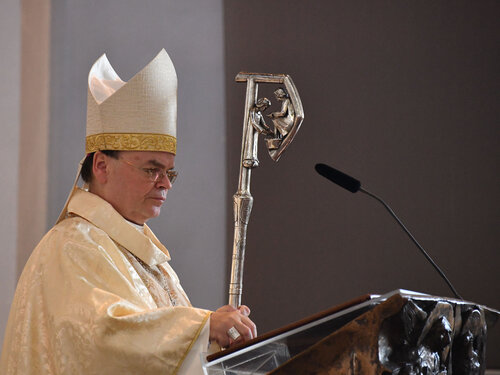 Darin liege aber auch die Gefahr des Überhöht-Werdens, erklärte Bischof Bertram und zitierte den Priester Engelbert Groß, der über die Stola als Zeichen schrieb: „Achtung! Hier ist Verehrung, hier ist Distanz vorgeschrieben. Hier gilt Kniebeuge und hier erscheint Hochwürden.“ Tatsächlich sei aber Christus gemäß biblischer Überlieferung ganz anders gekleidet gewesen. So berichte das Johannesevangelium, dass Jesus beim letzten Abendmahl aufgestanden sei und sich eine Schürze umgelegt habe, bevor er seinen Jüngern die Füße wusch. „Das liturgische Kleidungsstück bei der ersten Messe, die Jesus feiert, ist keine Stola, sondern eine Schürze, ein Arbeitskittel“, betonte Bischof Bertram: „Der Herr der Kirche leistet Sklavendienst, alles andere als hochwürdig“.