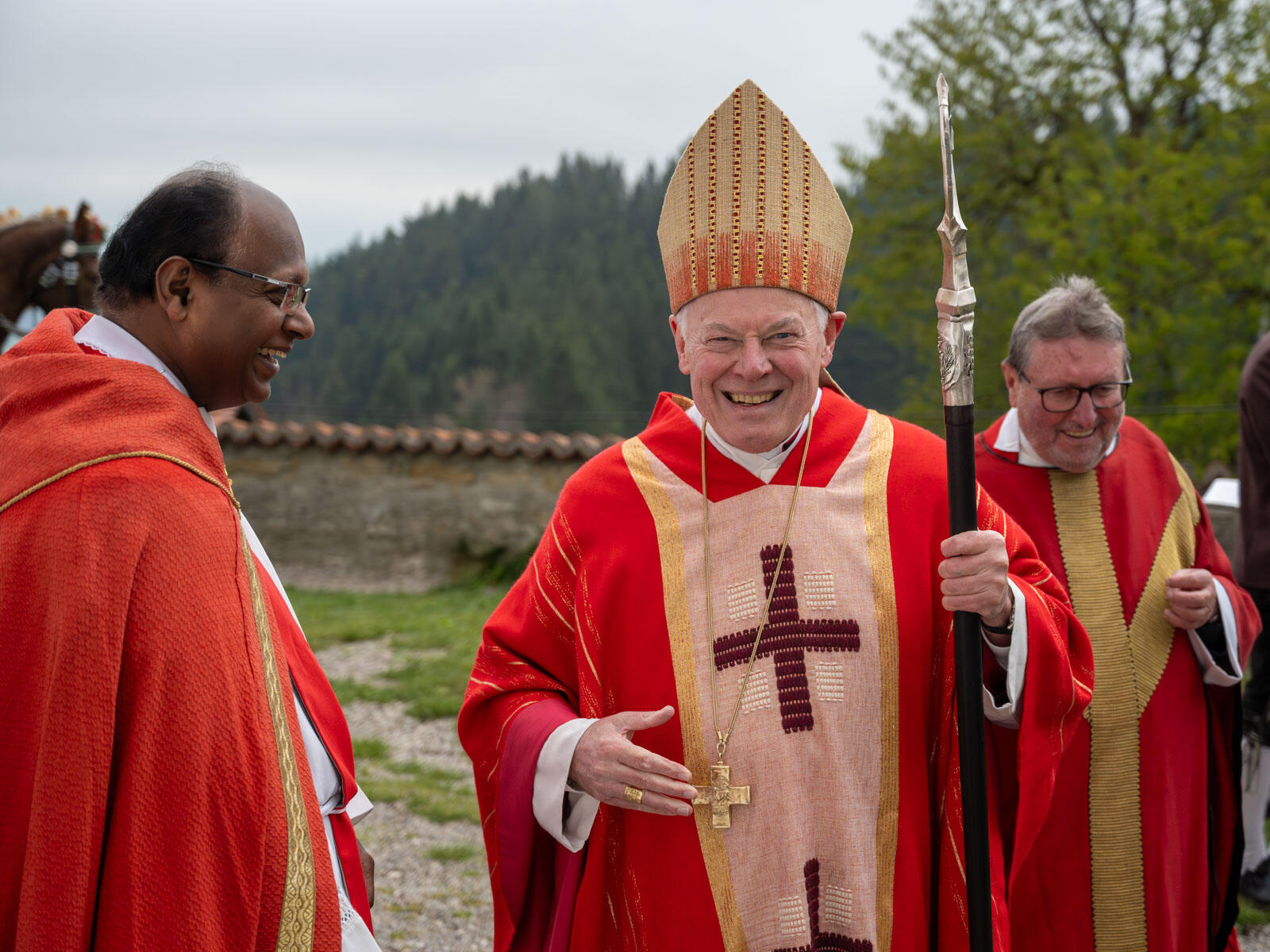 „Wir haben den Weltraum erobert, aber nicht den Raum in uns“, zitierte Weihbischof Lobinger abschließend den Benediktinermönch David Riedl. Die Errungenschaften der modernen Technik forderten die Menschheit noch mehr heraus, das richtige Maß im Umgang mit der Schöpfung zu finden und zu bewahren. Vielleicht könne auch die starke Tradition des Georgiritts auf dem Auerberg bei dieser Aufgabe helfen: „Der Mensch muss Maß halten! Er muss seine Stellung in der Schöpfung erkennen, damit alles in eine gute Zukunft geht. Vielleicht ist es so, dass uns hier das eine PS beim Georgiritt in Stötten mehr inspirieren kann, als die 500 PS des schönsten und teuersten Traktors im Allgäu.“