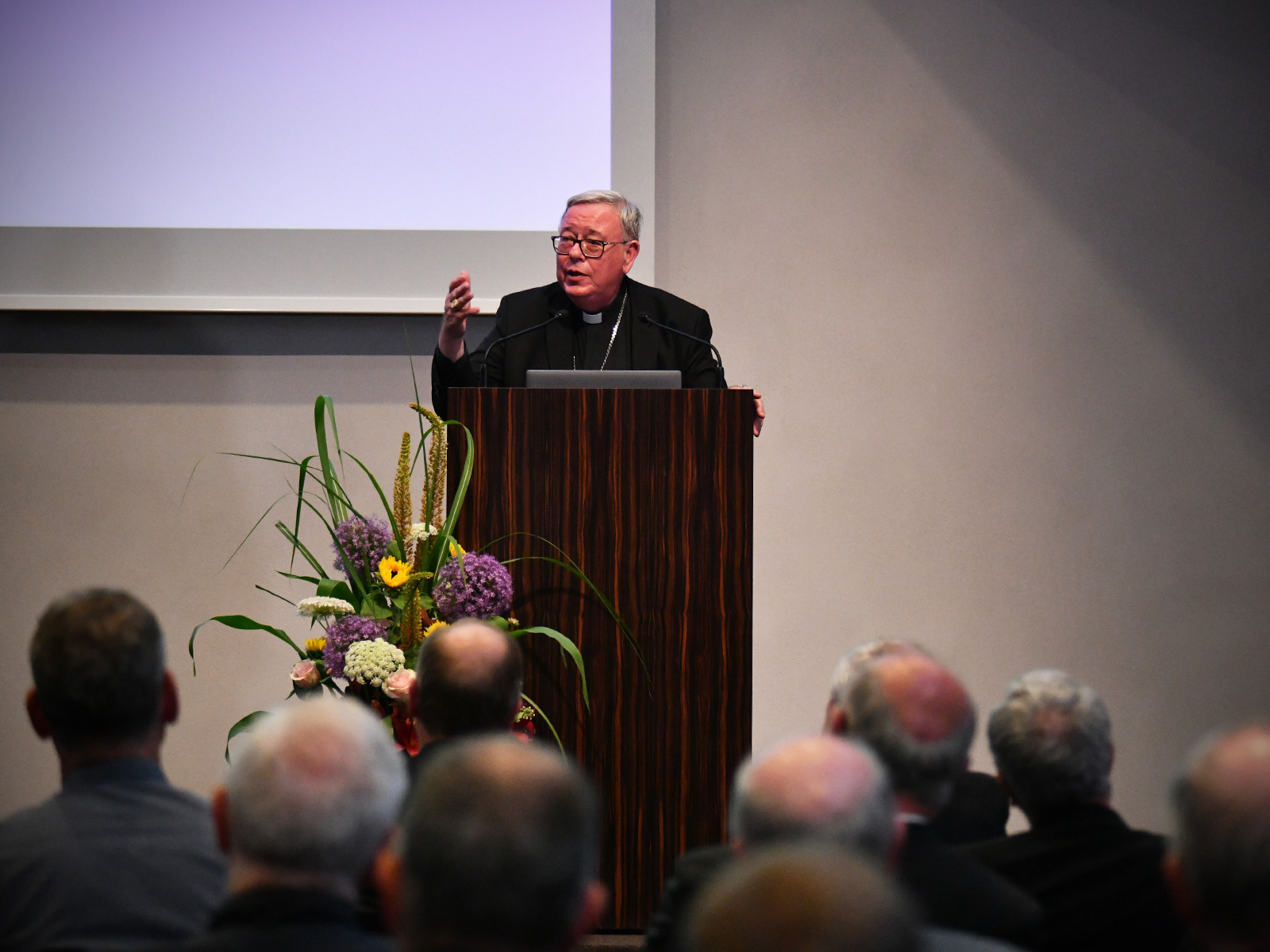 Nach dem Festgottesdienst waren die anwesenden Geistlichen in das Haus Sankt Ulrich eingeladen, wo Kardinal Hollerich nach einem gemeinsamen Mittagessen in einem Vortrag das Thema der kirchlichen Synodalität weiter ausführte. Im Besonderen erläuterte er als Generalrelator die Vorgehensweise der 2021 von Papst Franziskus einberufenen Weltsynode und die Notwendigkeit eines synodalen Aufbruchs der Kirche. Dabei verwies er auf die Einzigartigkeit einer auf allen Ebenen der Kirche vorangetriebenen weltweiten Synode wie auch auf die unbedingt nötige spirituelle Grundlage des Prozesses: „Eine synodale Kirche ist ohne den Beistand des Heiligen Geistes nicht möglich!“