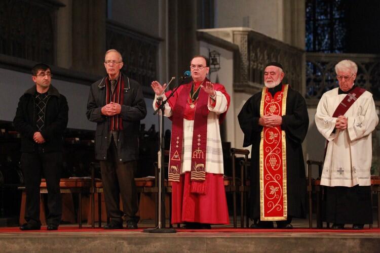 Die meditative Betrachtung des Leidensweges Christi wurde gestaltet vom Leiter des Referats Weltkirche der Diözese Augsburg, Domkapitular Prälat Dr. Bertram Meier. Prälat Meier sagte während der Andacht, wo Christen unterdrückt und verfolgt werden, da dürften Christen in den Ländern nicht schweigen, wo Freiheit herrscht. "Wir Christen in Deutschland haben nicht nur die Pflicht, auch anderen Religionen ihr Recht auf Entfaltung zuzusprechen. Wir stehen auch in der Pflicht, zur Sprache zu bringen, wo unseren christlichen Schwestern und Brüdern dieses Recht auf Religionsfreiheit vorenthalten wird. Wir sind Sprachrohr der vielen stummen Christen, die in ihren Ländern keine Stimme haben. Das ist Ökumene der Solidarität", sagte Dr. Meier.