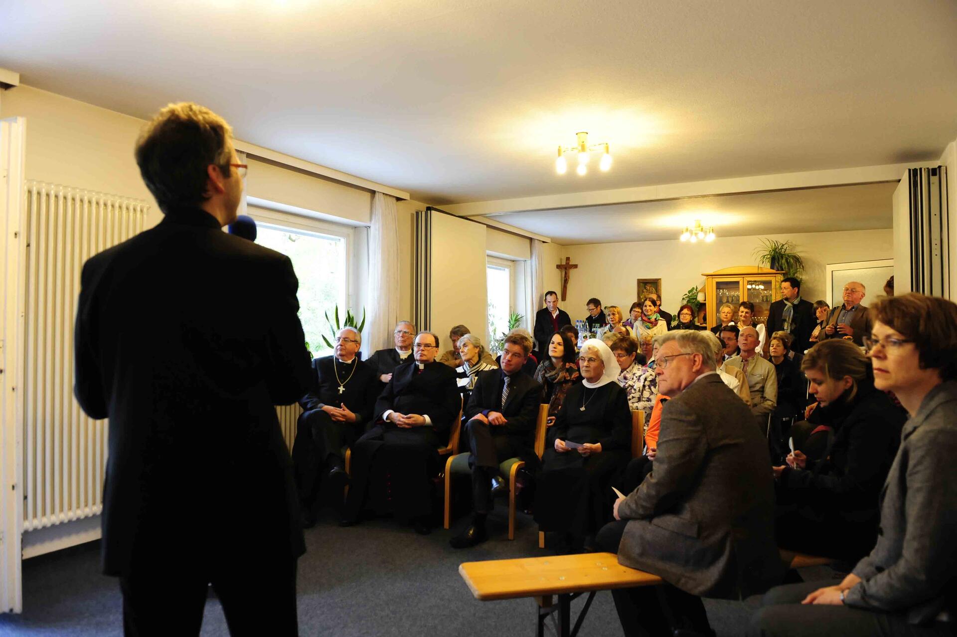 Armin Zürn, Dompfarrer und Vorstandsvorsitzender des St. Vinzenz-Hospiz e.V. führte neben Pfarrerin Lydie Nicoly Menezes vom Evangelisch-Lutherischen Kirchenkreis Augsburg und Schwaben, durchs Programm. Er betonte dabei, wie wichtig es sei, auch in einer Veranstaltungsreihe, die unter dem Titel „Woche für das Leben“ steht, über das Sterben zu reden: „Die „Woche für das Leben“ hat immer das Leben als Blickpunkt. Wir vom St. Vinzenzhospiz aus sind überzeugt, dass das Sterben eine Lebensphase ist, das heißt zum Leben gehört. Jedem Menschen steht der Tod bevor. Es gibt wenige Themen, die von so allgemeiner Bedeutung sind.“ Auch Domdekan Prälat Dr. Bertram Meier hob hervor, wie wichtig es sei, das Sterben als Teil des Lebens zu betrachten: „Es geht darum, das menschliche Leben zu schützen von der Zeugung bis zum natürlichen Tod. Christen helfen nicht beim Sterben nach, sie helfen Menschen im Sterben“. Gerade die Begleitung von Sterbenden in der Familie, unter Freunden oder im Hospiz sei ein Werk der Barmherzigkeit, so der Prälat weiter.