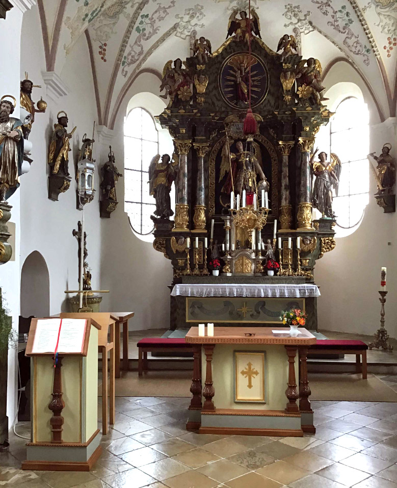 Neben der Außenrenovierung wurde der frühere, einfache Altartisch ausgetauscht und durch einen neuen Altar aus Holz ersetzt. Die kunstvollen Säulen, auf denen der Altartisch ruht, stammen von einer alten Kirchenbank. Wie er ist auch der neue Ambo ein Geschenk von Schreinermeister Andreas Bader. Auch der Ulmer Kirchenmaler Johannes Rieggemann, der die Figuren des restaurierten Ölbergs über dem Hauptportal der Kirche neu fasste, wirkte ebenfalls an der Gestaltung des Altares mit.